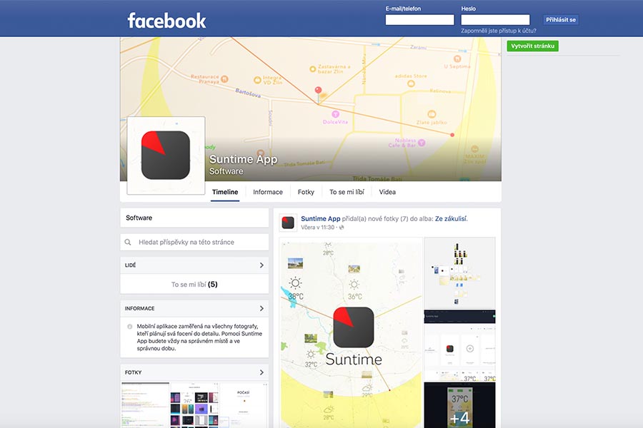 Facebooková stránka: www.facebook.com/Suntime-App-1045780085490840/