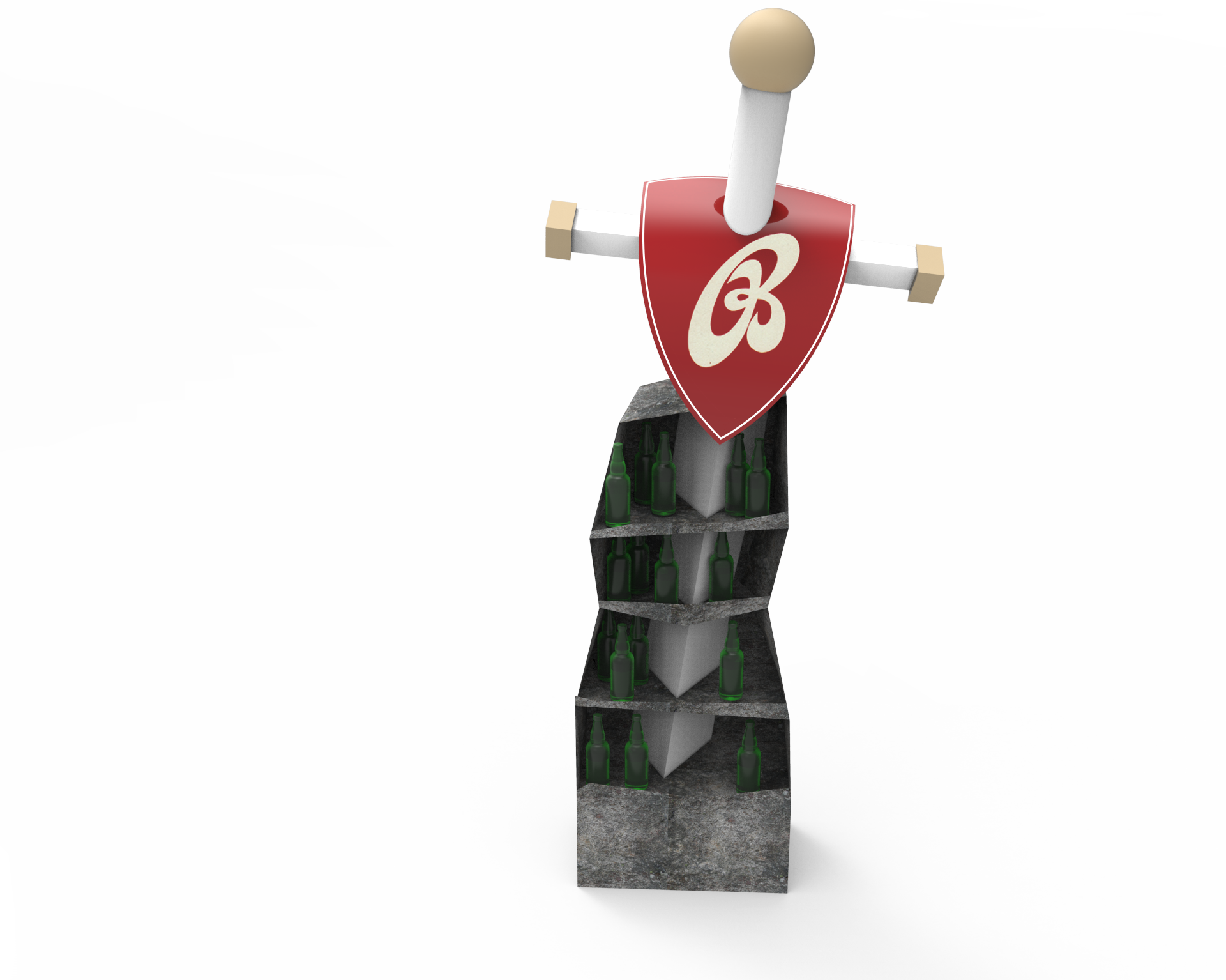 Popai 2017 - Návrh podlahového stojanu ke stěne pro Budějovický Budvar