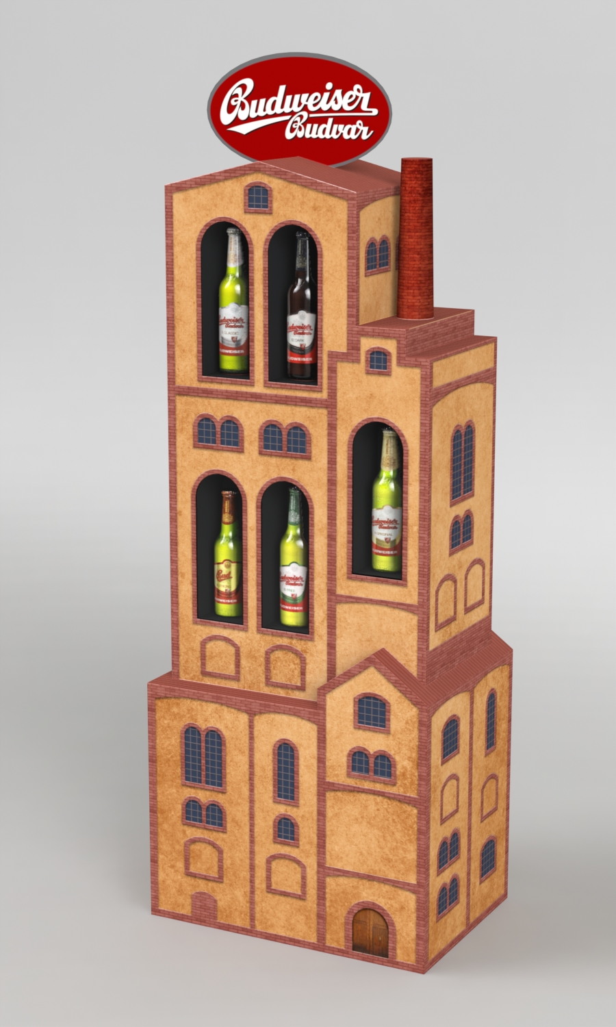 Design inspirovaný vzhldedem starých pivovarů, tento výstavní stojan odkazuje k tradici