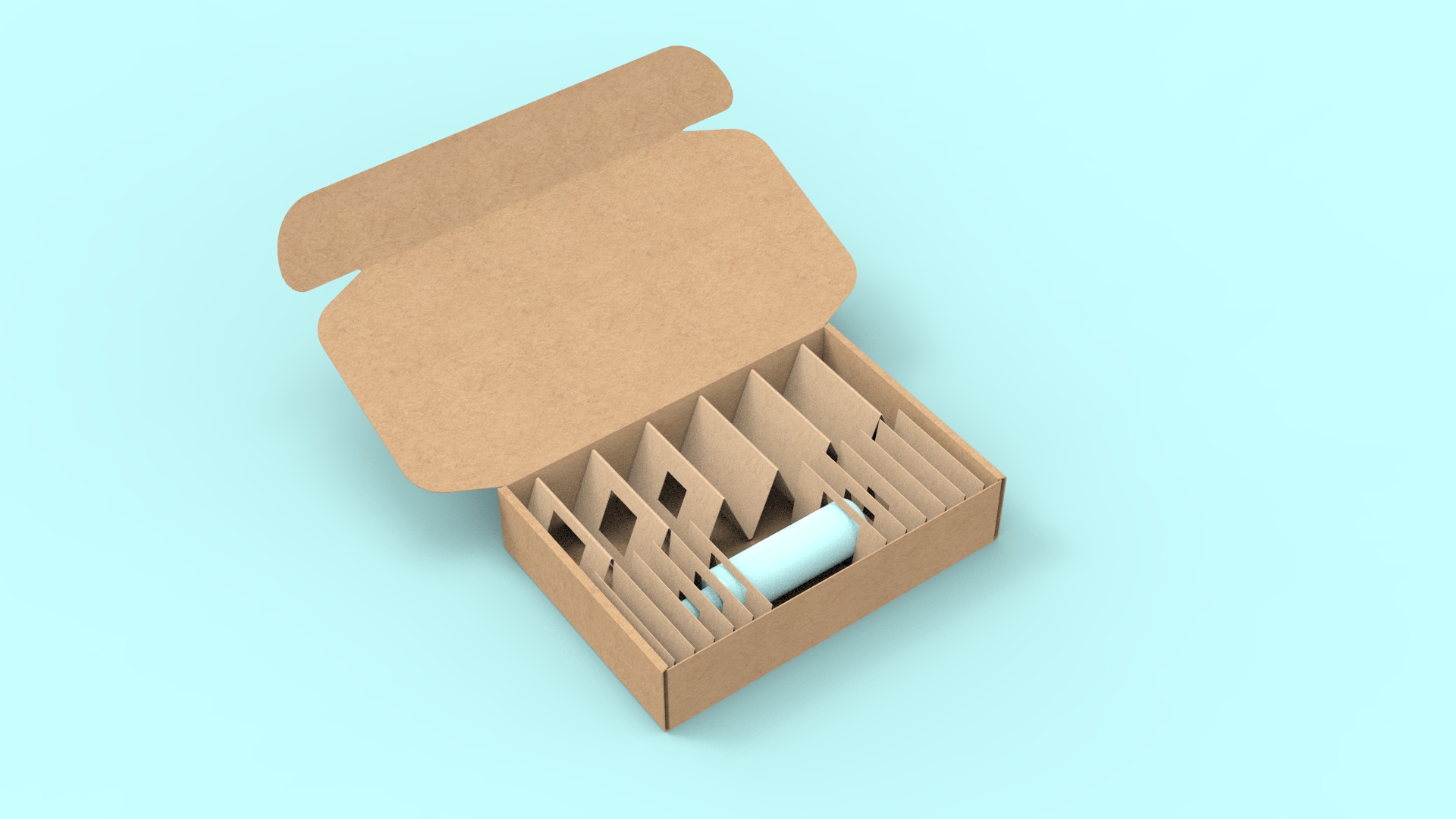 Nové řešení expediční krabice pro firmu Manufakturu, využívající papírového doplňku k uzamčení přepravovaného produktu a zvýšení kultury e-shopového obalu.