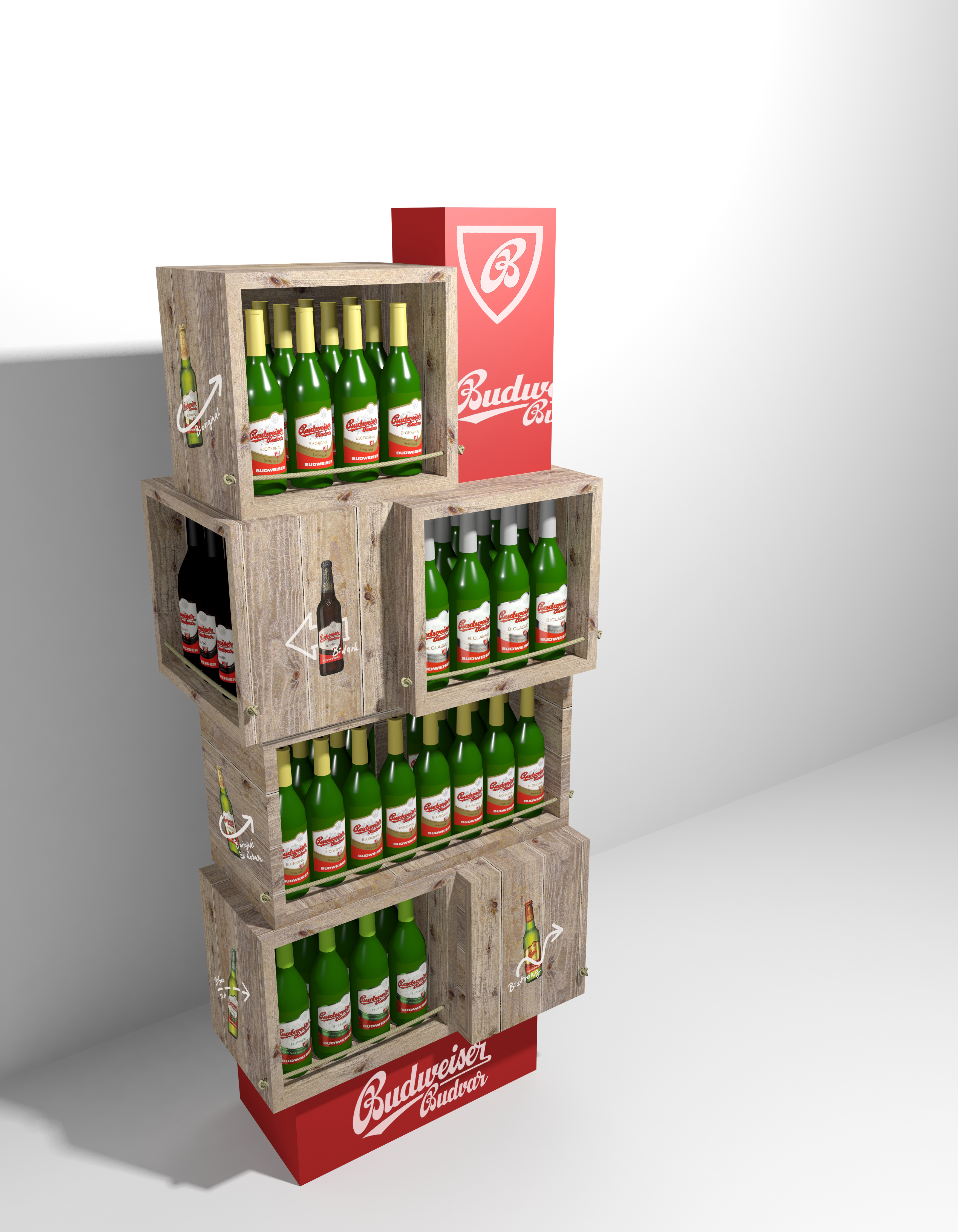 Dočasný podlahový stojan pro Budějovický Budvar, v rámci soutěže Popai.