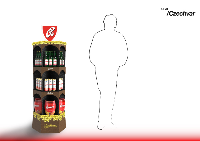 Výstavný stojan, inšpirovaný starovekým stĺpom a ozdobený zlatým chmelom má pripomínať v amerike, klasiku starého kontinetu a prémiovosť pomocou zlatých tónou.