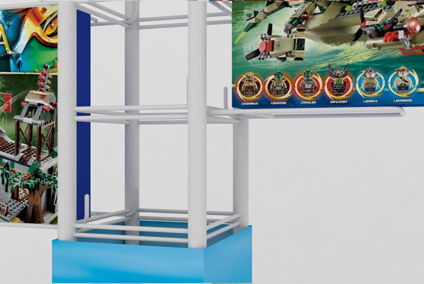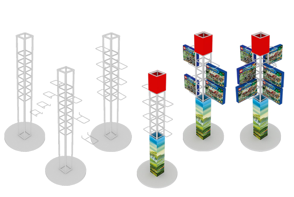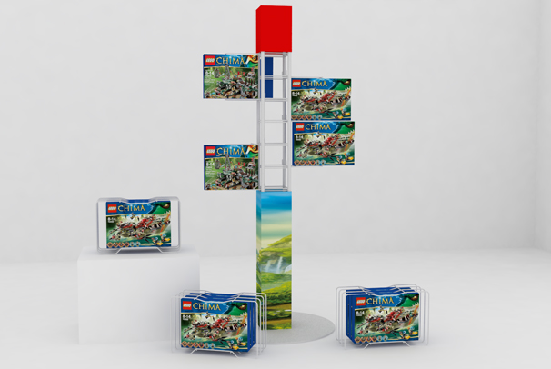 Úkolem bylo vytvořit POP materiál do výloh pro společnost Lego a jejich novou kolekci Legends of Chima. Řešení je koncipováno jako nosný systém pro krabice Lego, které sami o sobě jsou silným vizuálním prvkem a poutačem, tudíž není zapotřebí žádneho dalšího objektu. Pouze vystavení krabic s Legem do systému Wireframe, který dodává dojmu, že produkty levitují ve výloze.