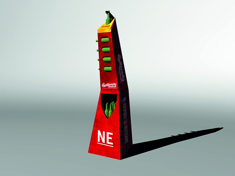 Návrh reklamného stojanu na pivo pre Budějovický Budvar.