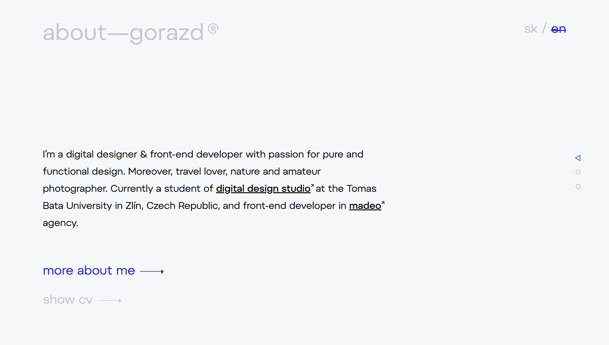 V semestrálnej práci sme sa venovali tvorbe osobného portfólia. Finálnu verziu najdete na http://www.gorazd.sk