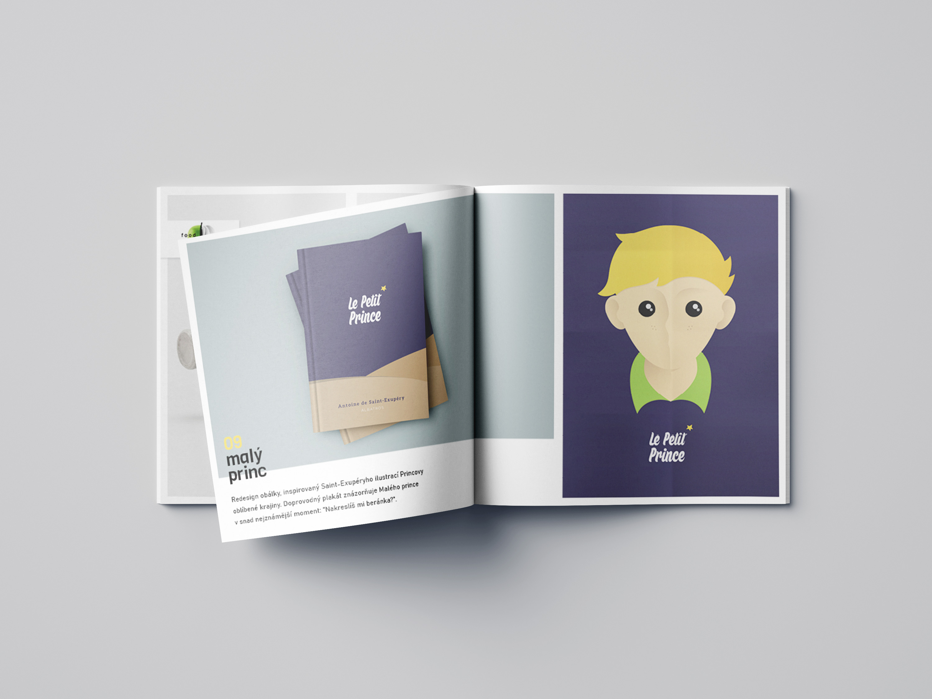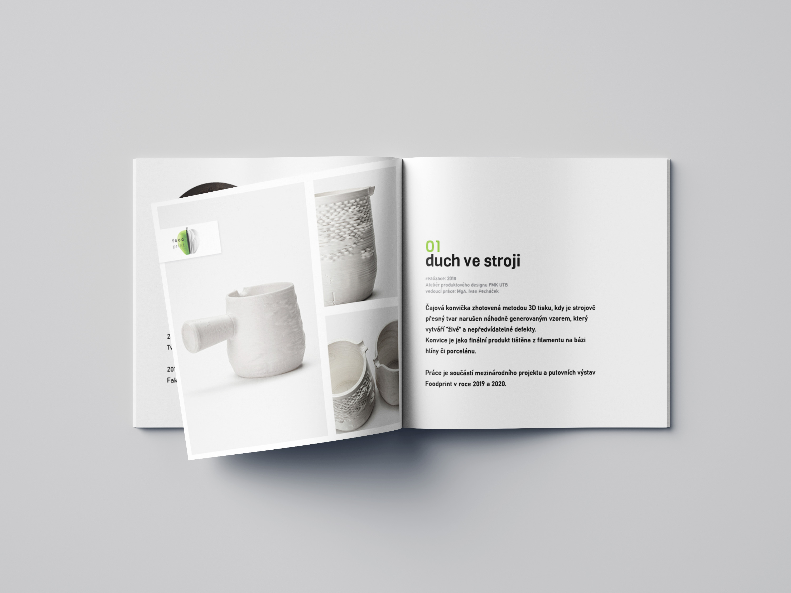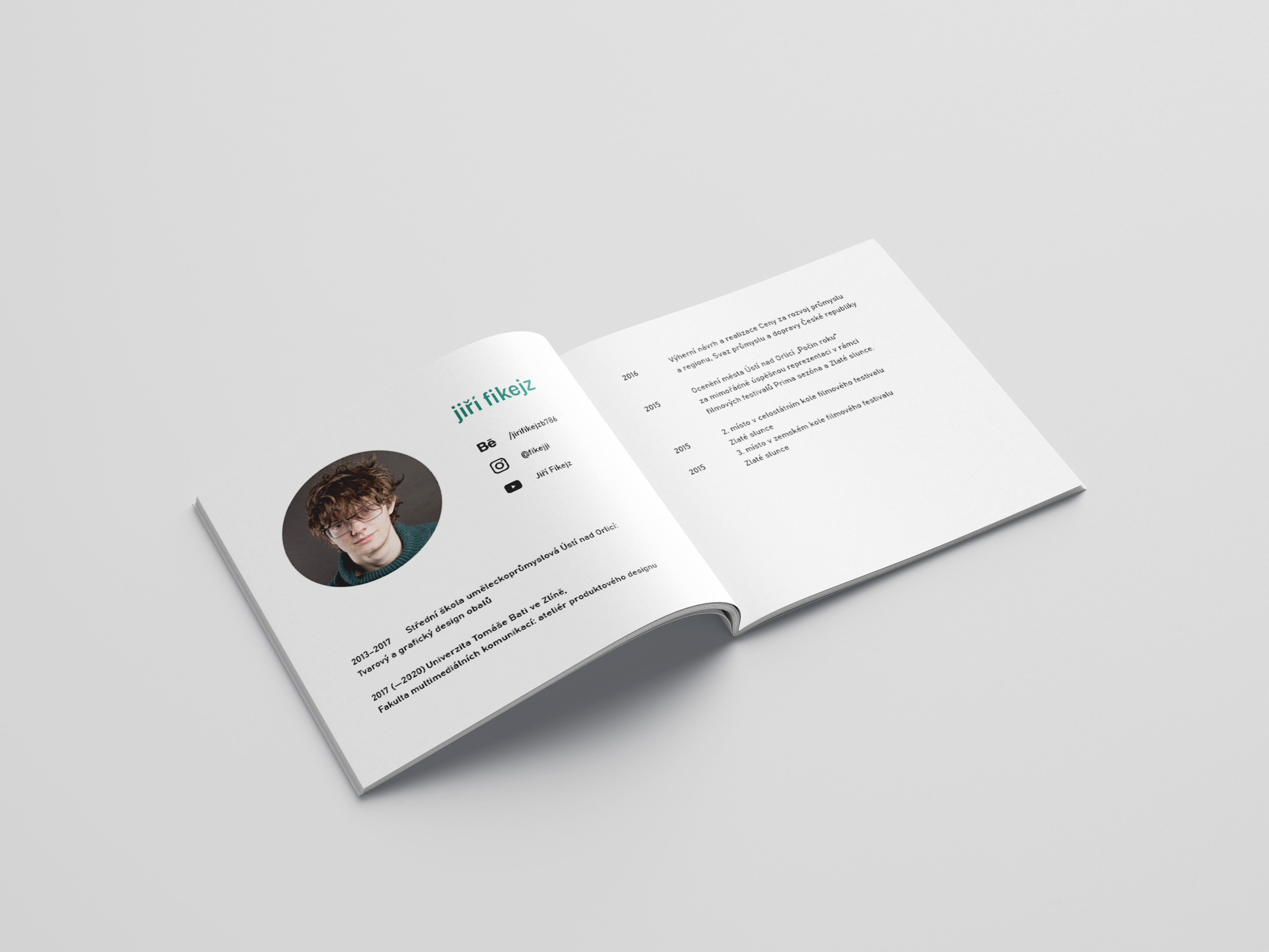 Portfolio čtvercového formátu obsahuje dvacet vybraných prací z produktového, obalového, grafického a digitálního designu.