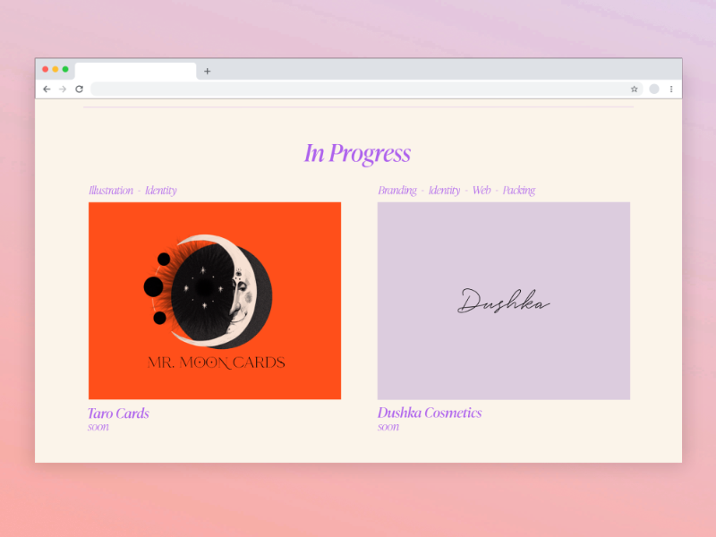 Pro prezentace svého portfolio zvolila jsem pratformu readymag. Snažila jsem se dodat do projektů víc informaci a procesu práci. Použila jsem jednoduchou standardní strukturu webu. Hlavní důraz je na obsah stránek.