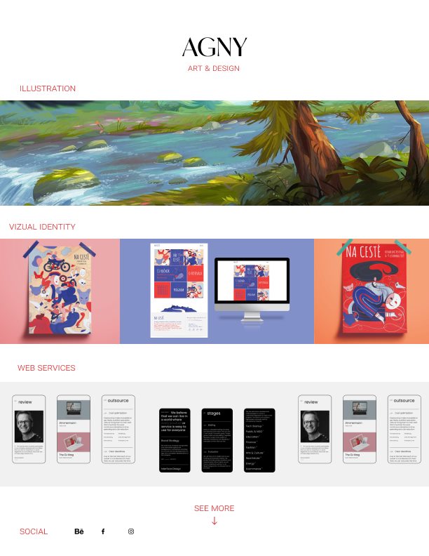 Vytvořila jsem portfolio layouty pro vlastní webovou stránku. Mým cílem bylo udělat čisté a minimalistické vzorky abych přidat víc pozornosti projektům. Portfolio doplnila jsem direct mailem.