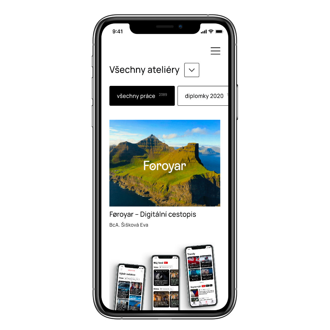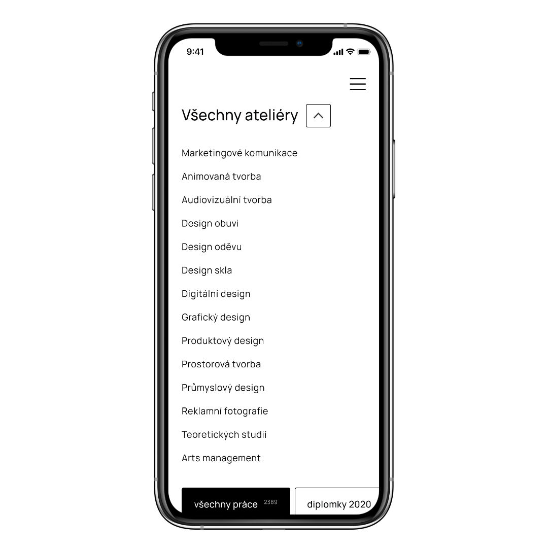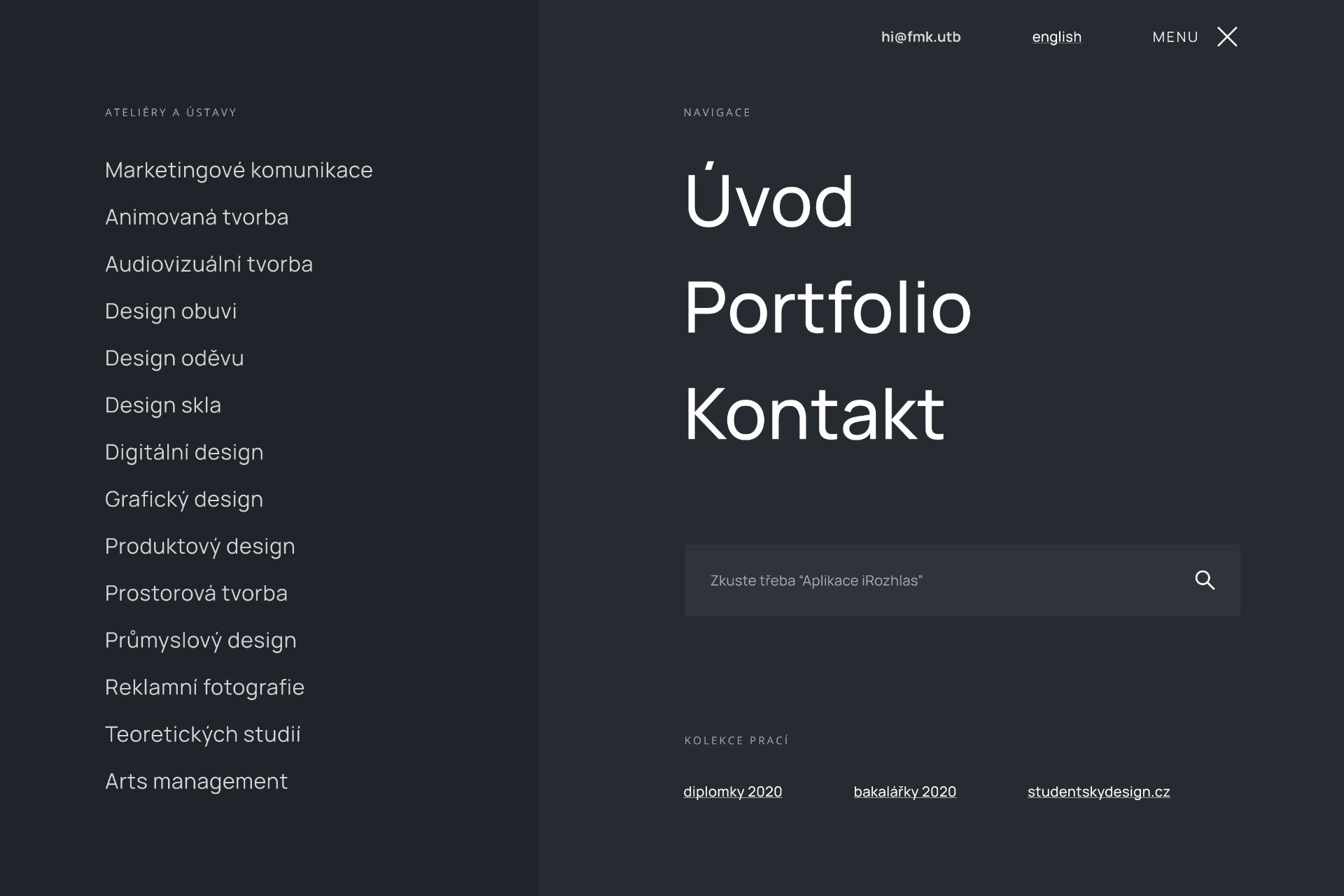 Návrh uživatelského rozhraní jednotného portfolia Fakulty multimediálních komunikací. Mé řešení se snaží výrazně ulehčit uživateli navigaci skrze jednotlivé fakulty, a zároveň co nejlépe prezentovat práce studentů. Hlavním komponentem na webu je jednotná navigace pro portfolia atelierů, která ulehčuje navigaci na webu. Minimalistické rozhraní záměrně ustupuje vystaveným pracím tak, aby co nejlépe vynikly. Web je založen na rešerši, personách, informační architektuře a wireframech, které se v průběhu semestru testovali.