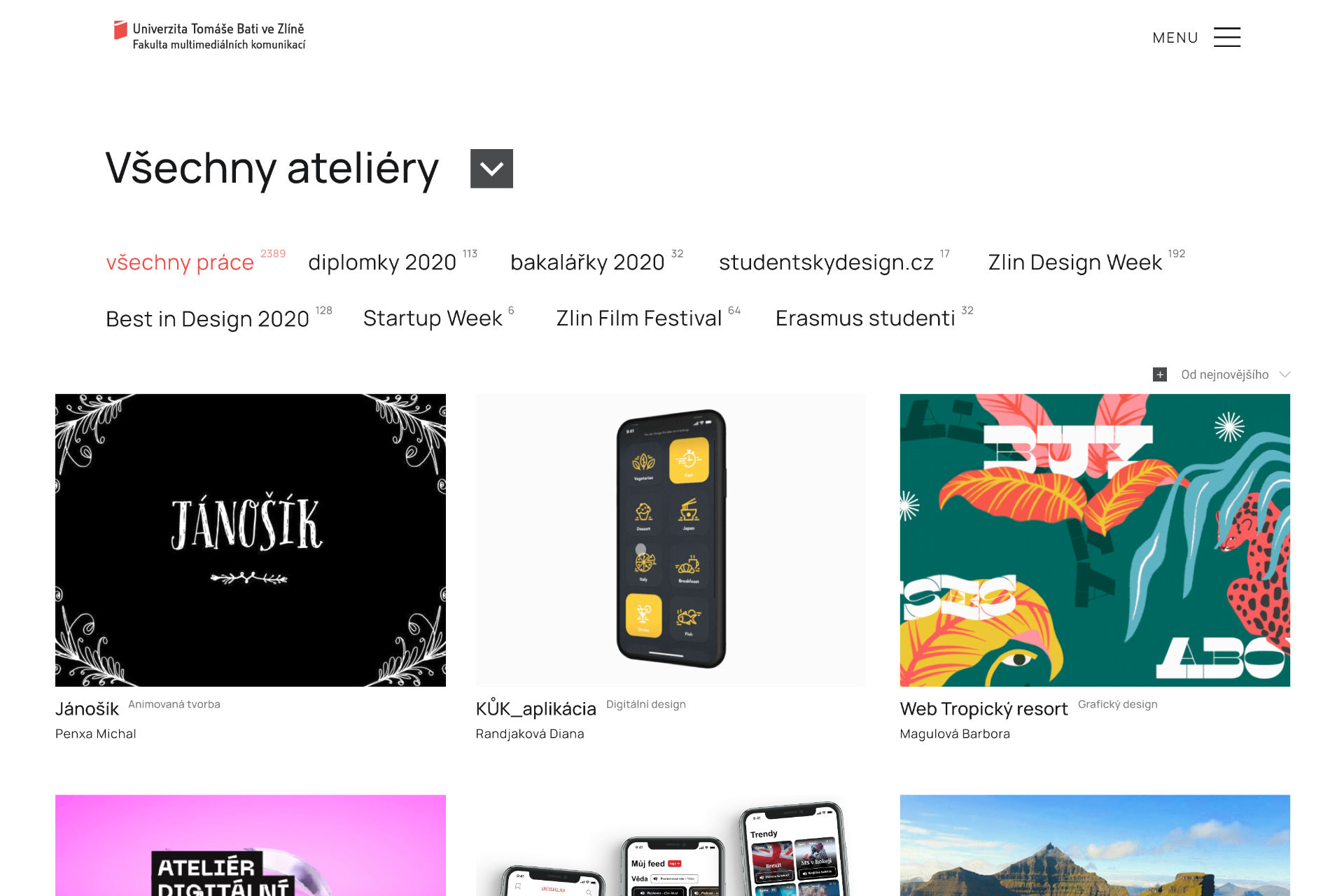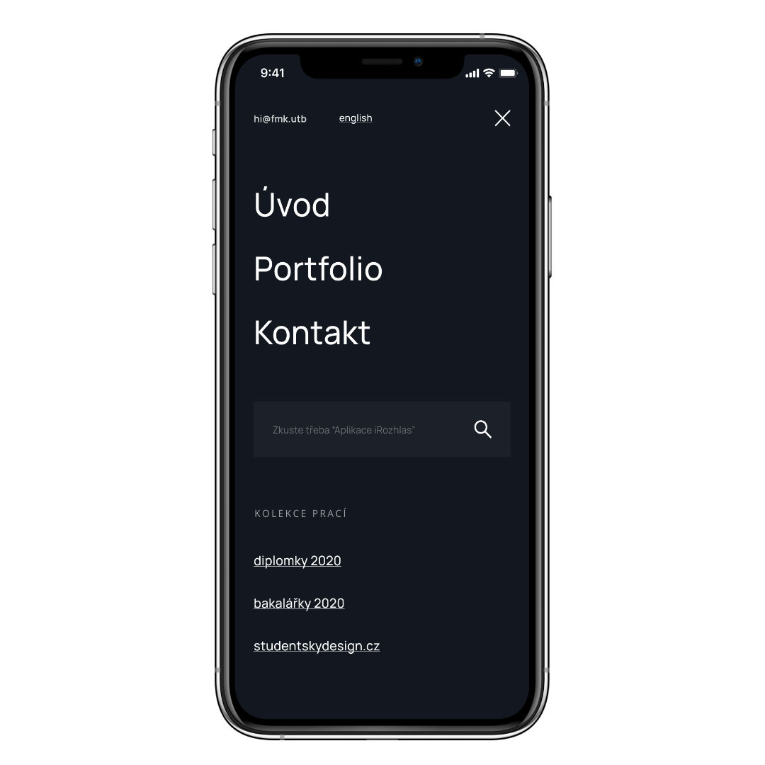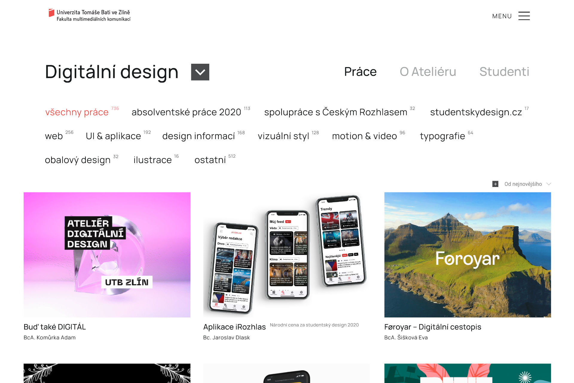 Návrh uživatelského rozhraní jednotného portfolia Fakulty multimediálních komunikací. Mé řešení se snaží výrazně ulehčit uživateli navigaci skrze jednotlivé fakulty, a zároveň co nejlépe prezentovat práce studentů. Hlavním komponentem na webu je jednotná navigace pro portfolia atelierů, která ulehčuje navigaci na webu. Minimalistické rozhraní záměrně ustupuje vystaveným pracím tak, aby co nejlépe vynikly. Web je založen na rešerši, personách, informační architektuře a wireframech, které se v průběhu semestru testovali.