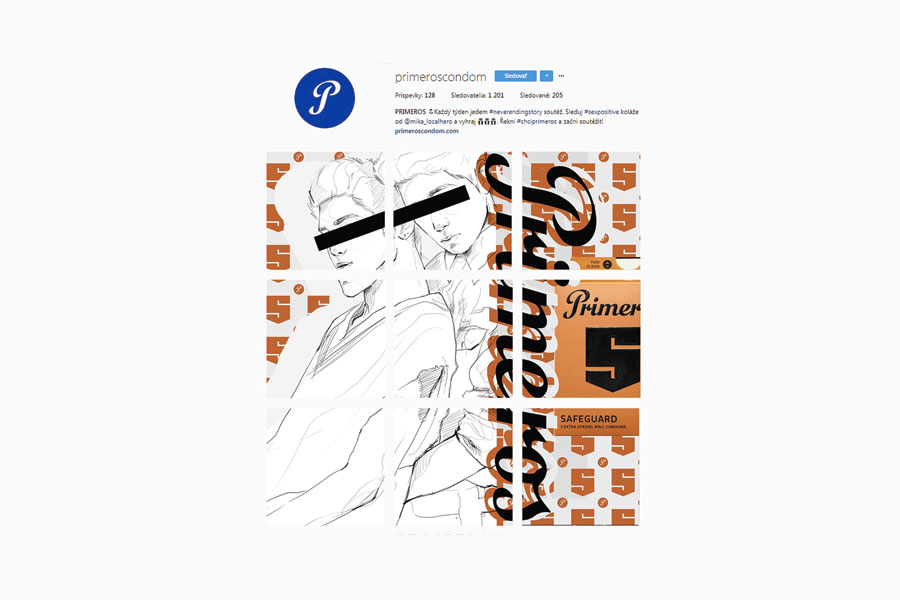 Sada troch radov obrázkov na Instagramovom feede značky Primeros Condom, ktorý tvoria jeden ucelený obrázok. Návrh je vytvorený pre typ Safe Guard, zobrazujúci "neštandardný" homosexuálny pár, ktorý býva na väčšine propagačných materiálov zriedkavosťou.