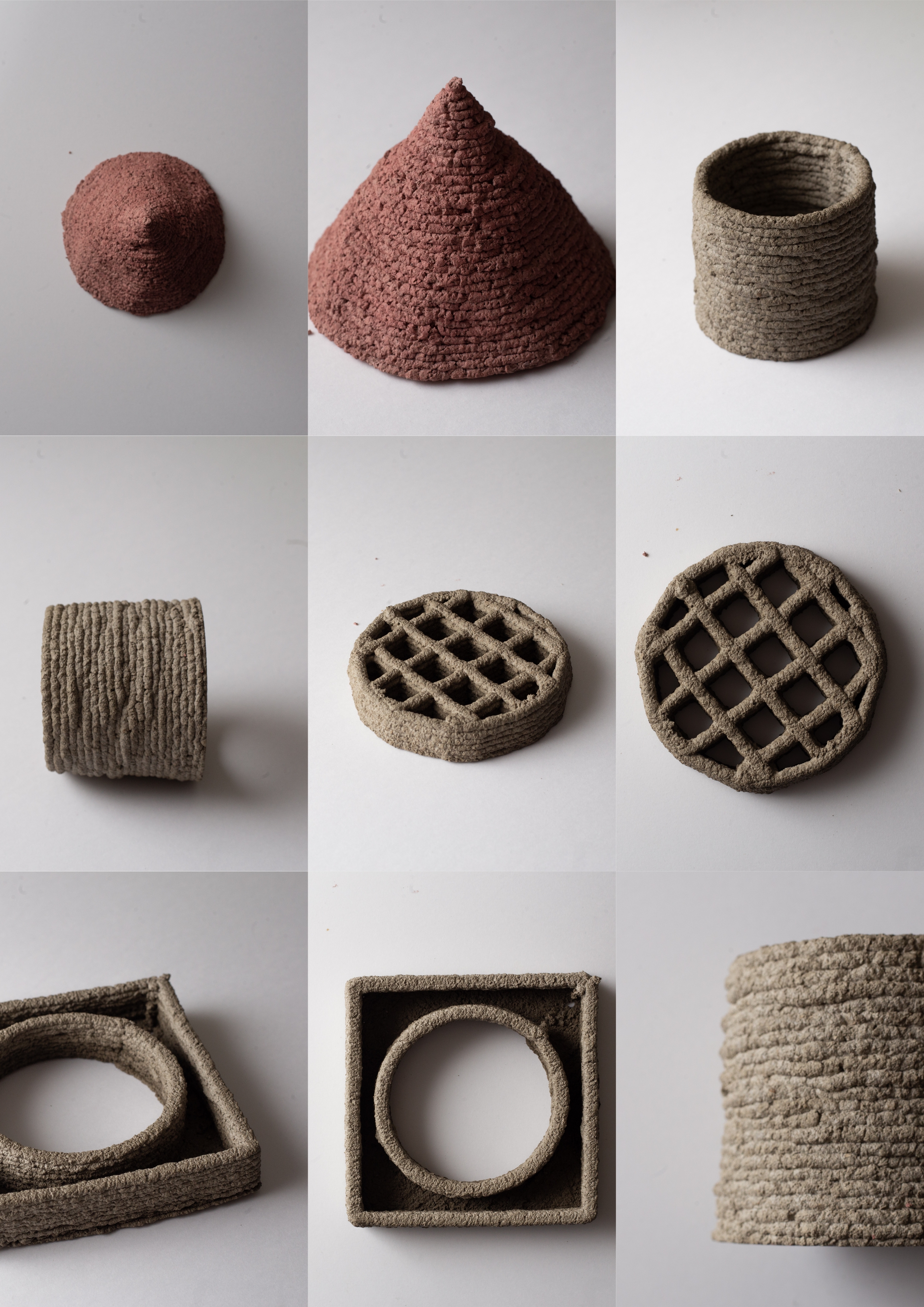 V rámci této práce jsem také testoval tisk na malém extruderu, testoval přípravu dat a modelování v Grasshopperu a testoval materiály vhodné k tisku.