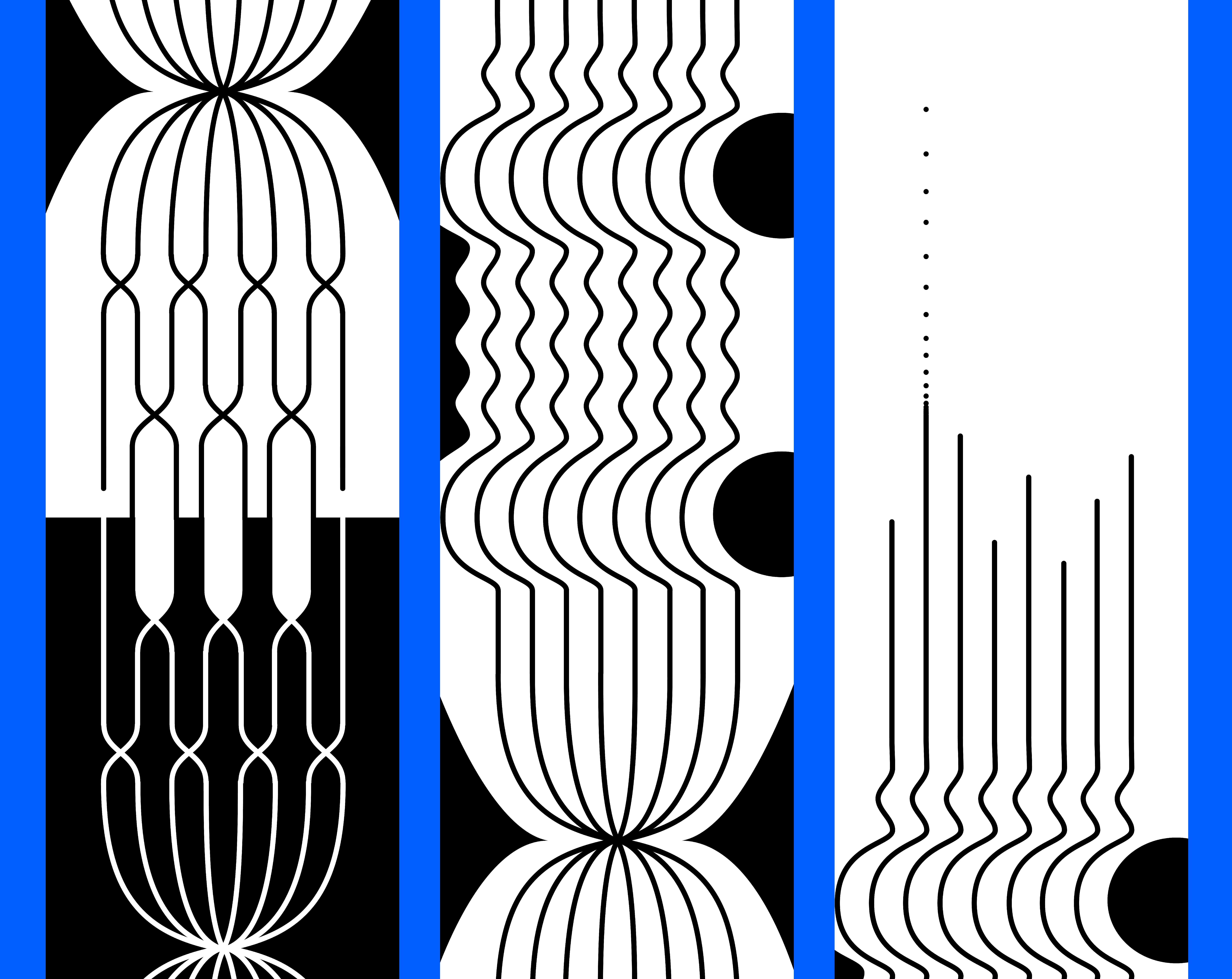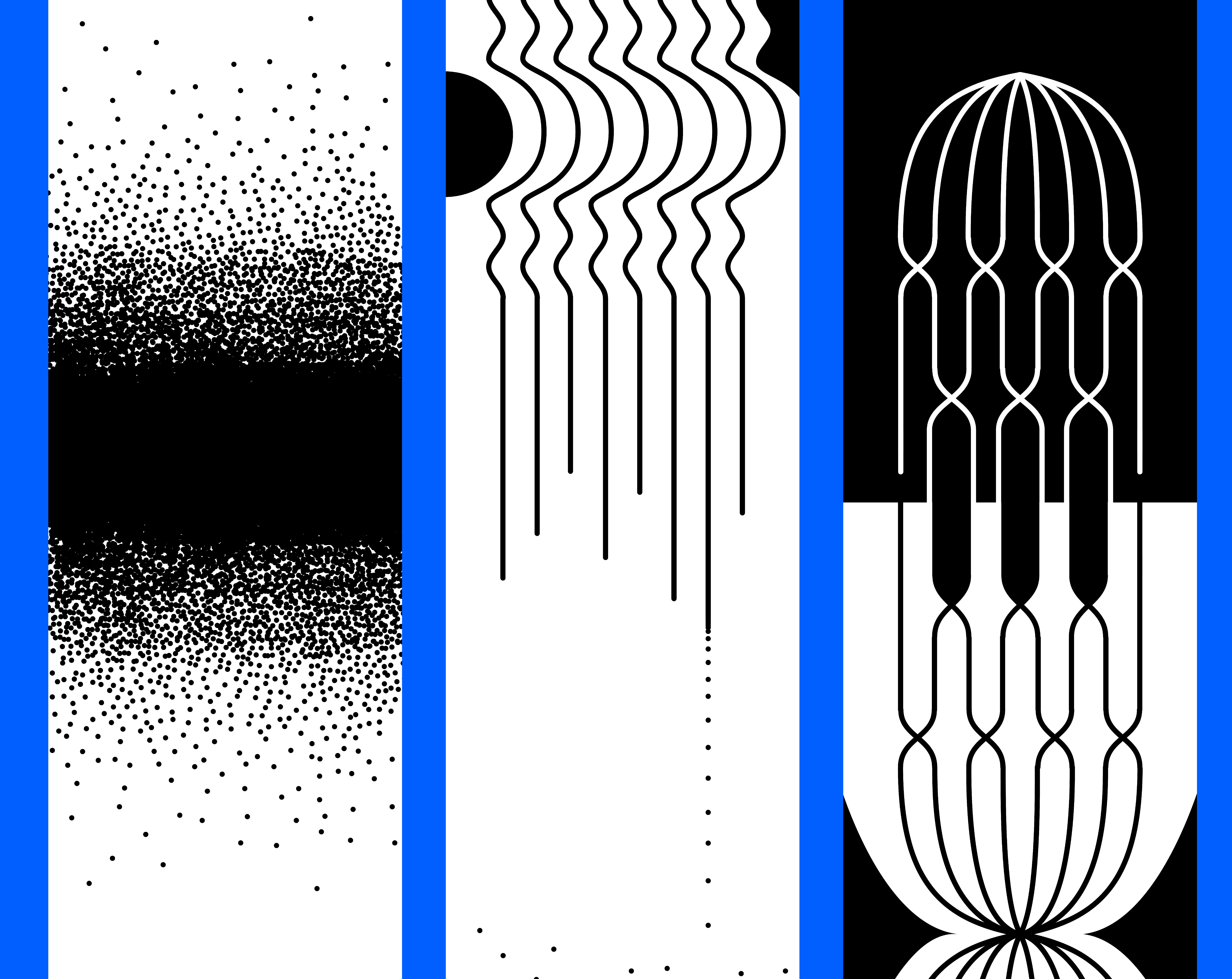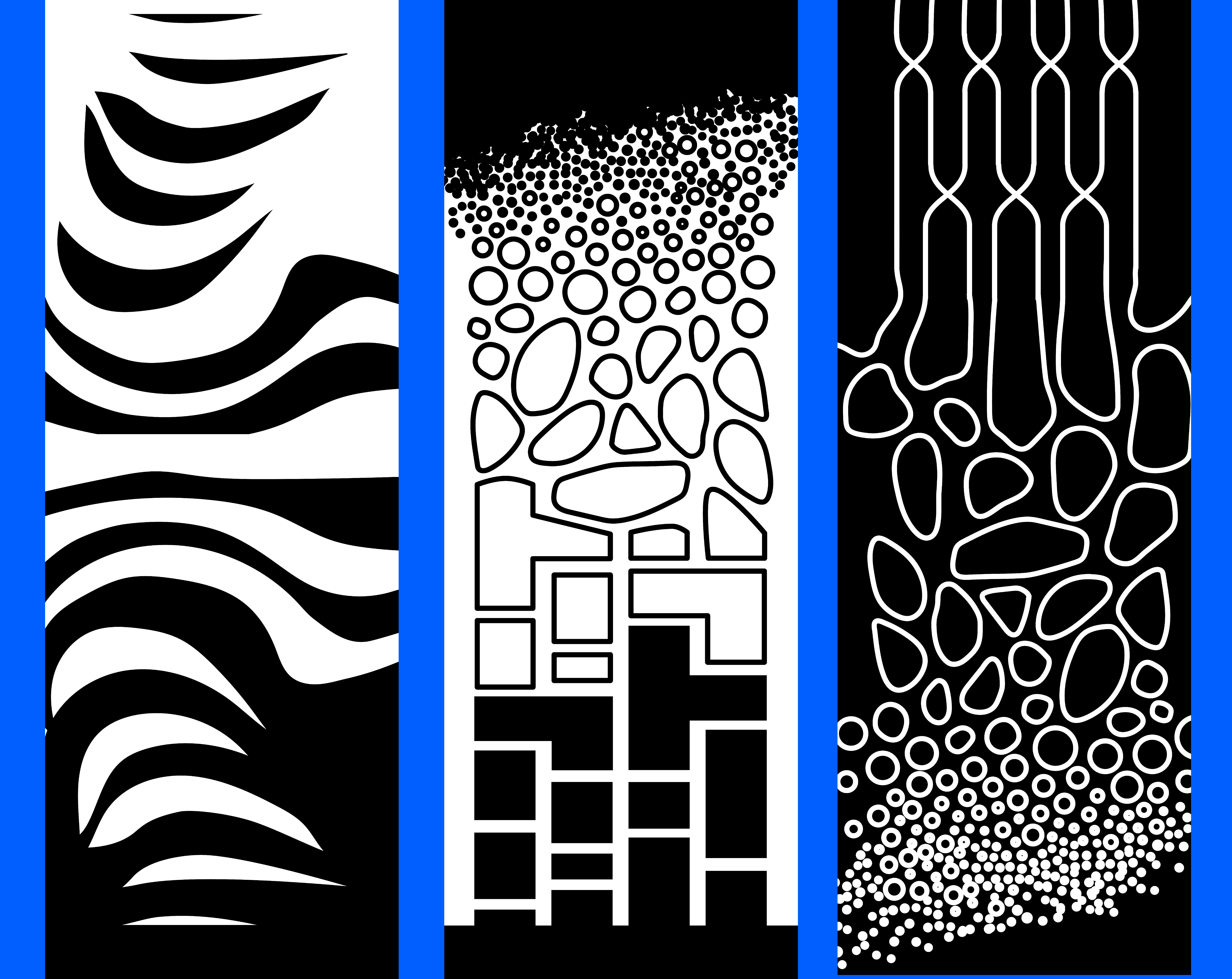 V tomto cvičení, zadaném jako návrh programu pro Janáčkovu fontánu v Brně, jsem se snažila vyhrát s transformací tvarů a obrazců na jiné. Zaměřila jsem se také na dynamiku pásma pomocí střídání tmavých a světlých částí. Rozhodla jsem se proto využít lineární vectory prokládané jednoduchými a výraznými plochami