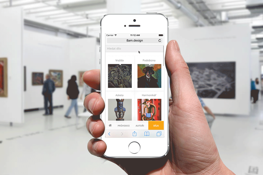 My goal was to make fully functionable website for mobile devices which you can use as a guide and easily find information about authors and their works. Website includes guide categorized by artistic movements, search of authors or works and of course some basic information about exhibition itself. It's made for mobile devices only, mainly for iPhone 5(s).