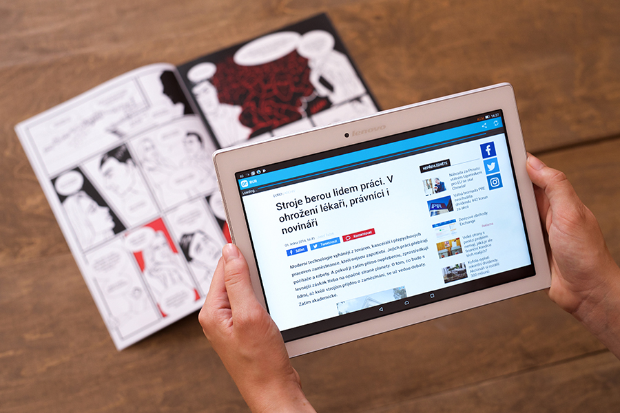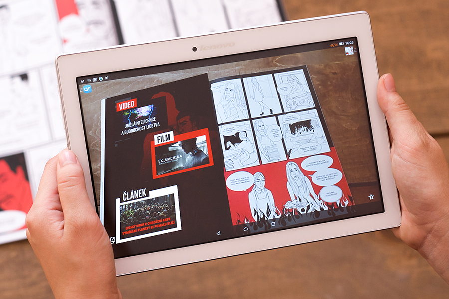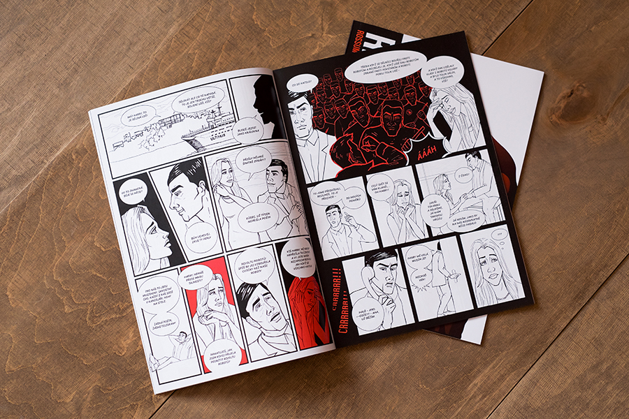 Bakalářská práce, jejimž tématem byla ilustrovaná kniha s rozšířenou realitou. Výsledkem je komiks podle knižní předlohy Karla Čapka. Ke zpracování jsem si vybrala první dějství.