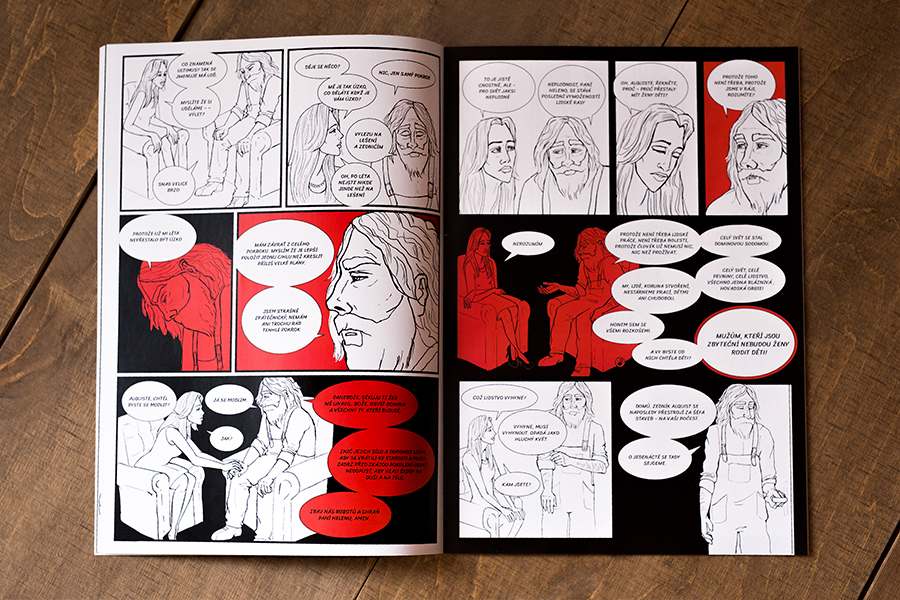 Při práci s texty jsem se snažila různými prostředky zdůraznit akcenty v řeči, např. tvarem bublin při výkřiku.