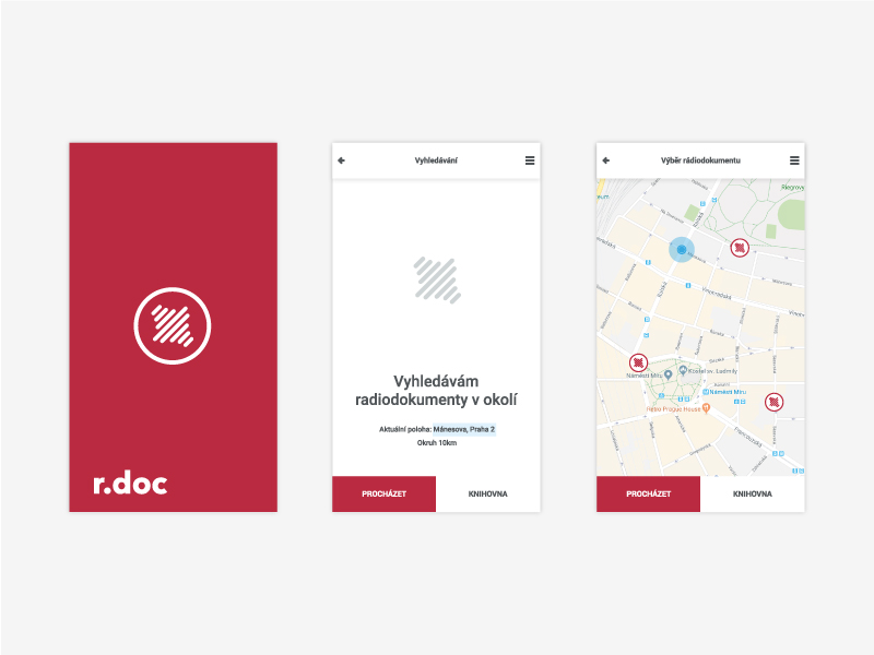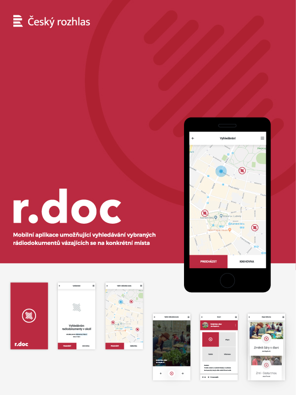 Mobilní aplikace umožňující vyhledávání vybraných rádiodokumentů v okolí Vaší současné polohy a souvisejících s konkrétním místem. Hlavním cílem pro vytvoření konceptu této mobilní aplikace bylo nejenom motivovat poslouchače ještě více k poslechu, ale také přidat jakousi emoční vrstvu, zážitek. Mobilní aplikace r.doc je zaměřena na skupinu lidí, která se již o rádiodokumenty zajímá a rozšiřuje toto audio pomocí online digitálních technologií. Poslouchač přehrává rádiodokumenty nejen ve svém volném čase, ale také například během přesouvání z místa na místo ve městě, nebo při cestování po České republice. Z této skutečnosti jsem vycházel při vytváření konceptu této mobilní aplikace. Koncept jsem navrh jako přehrávač rádiodokumentů, které se týkají daného místa.
