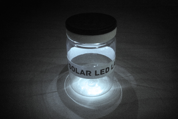 Solární lampička vznikla na základě výše uvedeného zadání. Snahou nebylo pouze použití recyklovaných materiálů ale především recyklace samotného světla. Díky těmto poznatkům vzniklo solární ambientní svítidlo zajišťující orientaci v tmavých prostorách. Lampička je vyrobena z odpadního materiálu plastové uzavíratelné láhve od granulovaného čaje. V horní části je umístěn solární panel reagující na intenzitu solární energie a její následnou akumulaci. Pod víkem láhve je upevněna baterie se spínačem a čtyřmi vysoce svítícími diodami. Při akumulaci solární energie během dne dochází k napájení baterie a následné aktivaci diod při setmění. Díky solárnímu panelu a následné akumulaci energie je vytvořeno nezávislé svítidlo, které reaguje na aktuální světelné podmínky kolem nás.