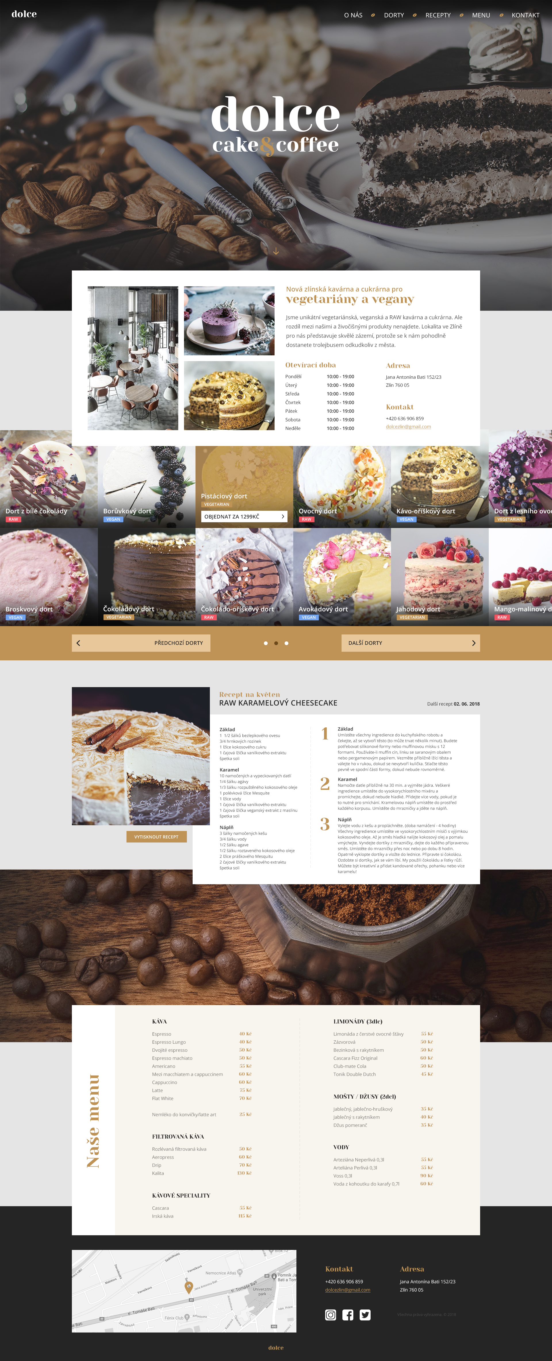 Cílem bylo vytvořit responzivní webovou stránku pro vegan a raw kavárnu s moderním ale zároveň luxusně působícím vzhledem. Na tomto webu zákazník najde základní informace jako např. adresu, na níž kavárna sídlí, otevírací dobu, menu apod. Funkcionalita webu je rozšířena o možnost objednání dortu. Dále se na webu nachází i recept, podle kterého si může návštěvník sám doma upéct některý z dortů. Tento recept je každý měsíc měněn.