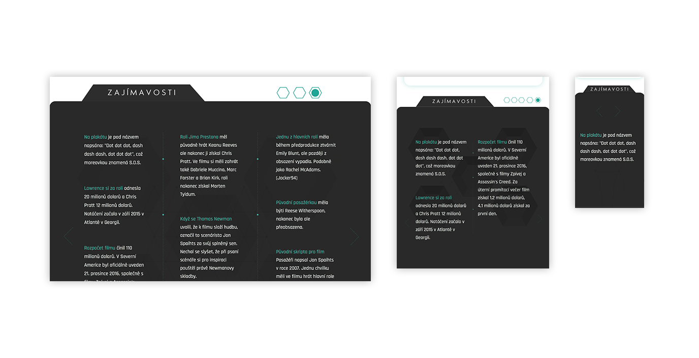 Web je vytvořen v rozlišení od 1920–320 pixelů, tedy od větší obrazovky až po mobilní zařízení.