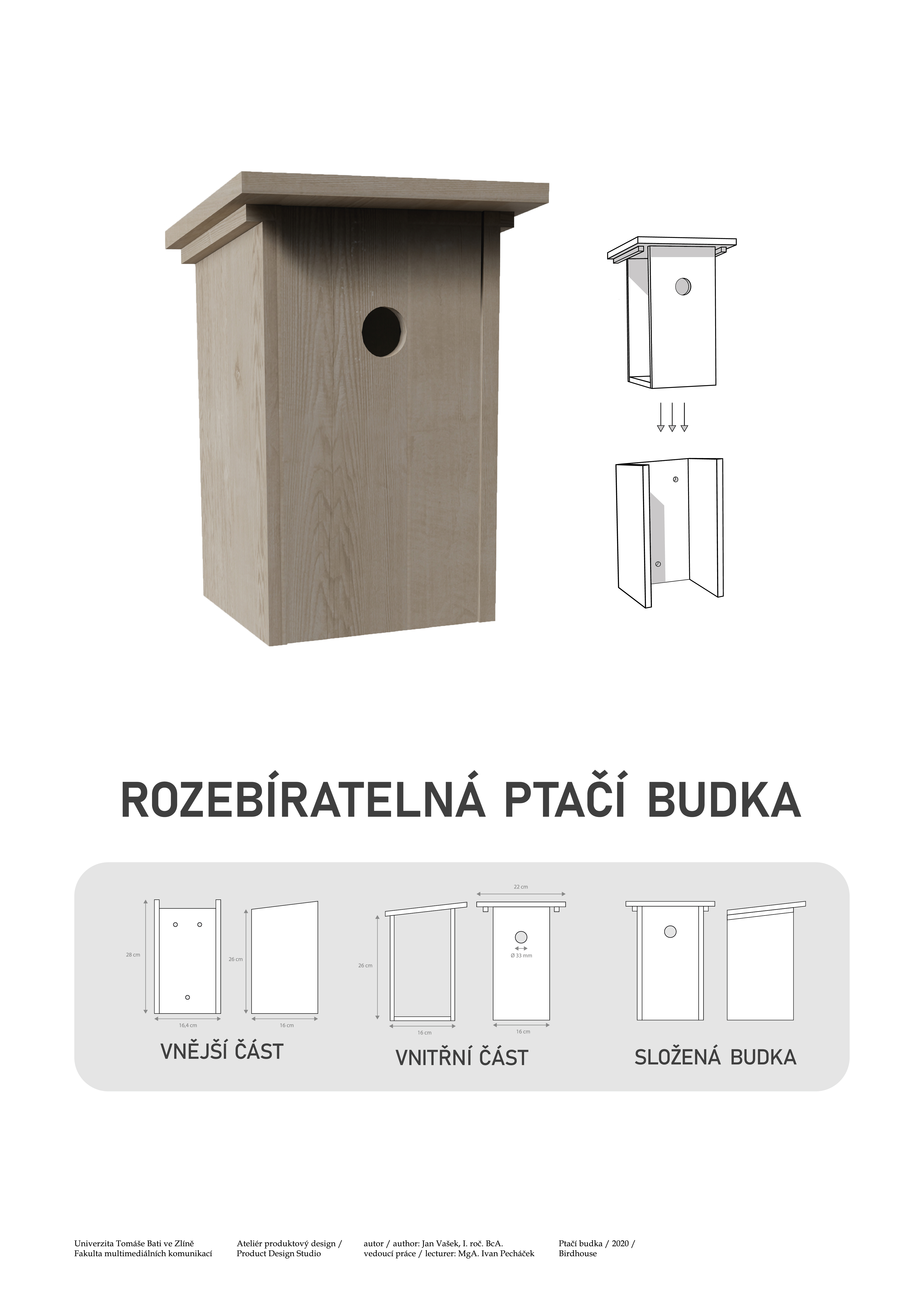 Bezpečná a funkční ptačí budka, která je navržená pro snadné čištění.