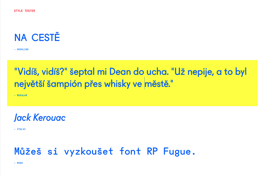 Webová prezentace písma Fugue českého typografa Radima Peško