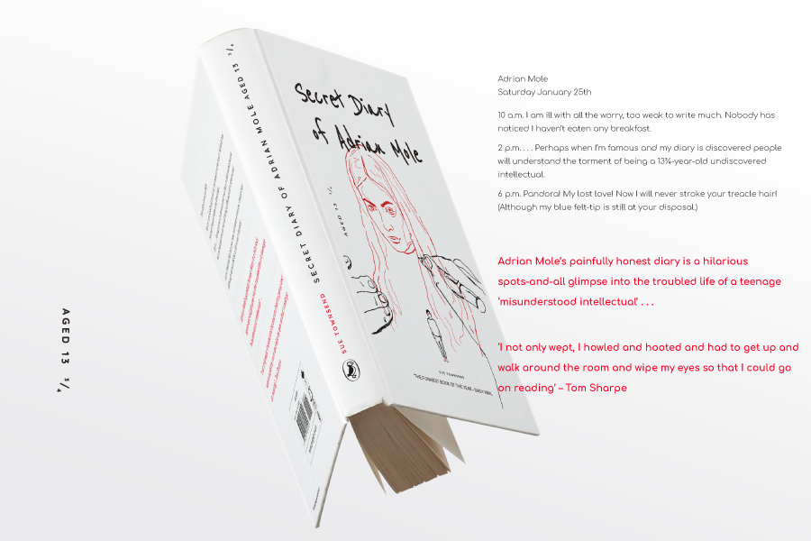 Návrh knižnej obálky knihy SECRET DIARY OF ADRIAN MOLE, do súťaže Student Design Award 2017, ktorú organizuje nakladateľstvo Penguin Random House UK.