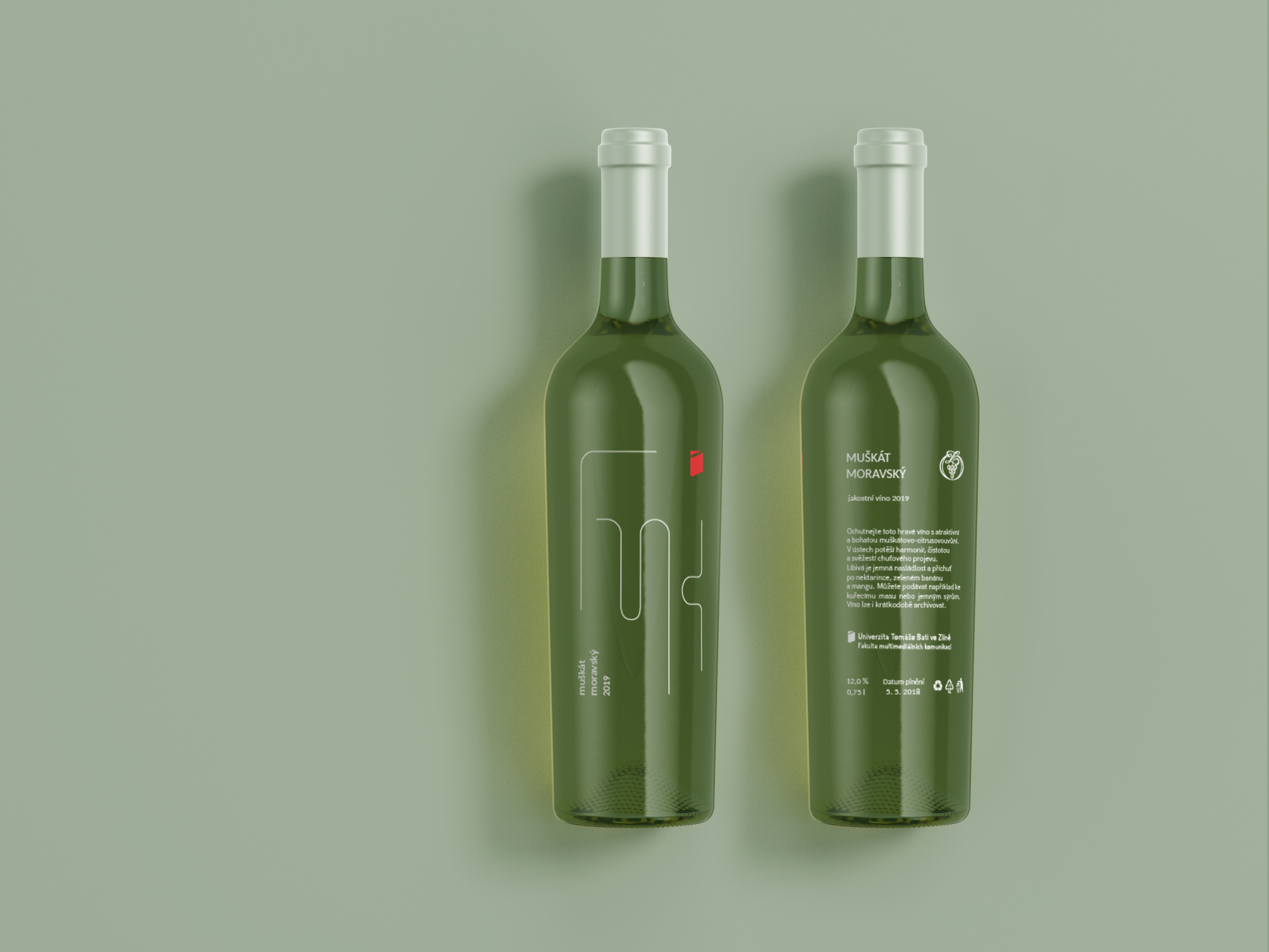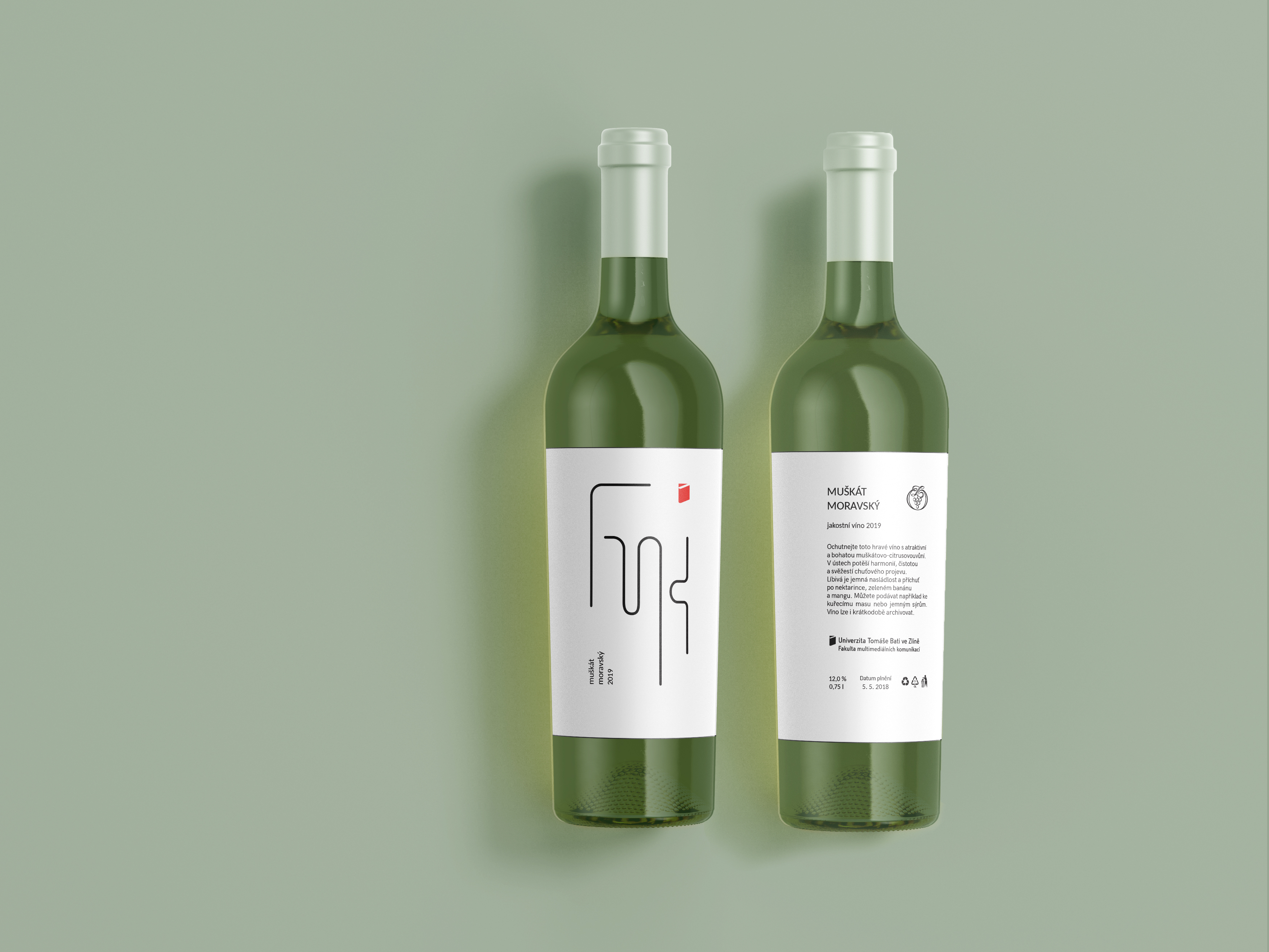Návrh etiket na bílé a červené víno je vytvořený pro fakultu multimediálních komunikací. Výsledný produkt slouží fakultě jako dárkový předmět. Hlavním prvkem návrhu je zkratka fakulty s písmeny FMK.