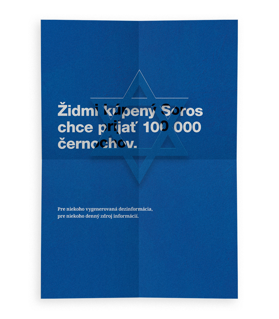 Séria kritických plagátov poukazuje na problém hoaxov a falošných správ, ktoré majú v súčasnosti veľký dopad na demokratické krajiny a ich stabilitu. Extrahovaním najčastejšie využívaných pojmov slovenskej dezinfoscény som vytvoril generátor jednoduchých hoaxov, ktoré som umiestňoval na jednotlivé plagáty a dopĺňal príslušným symbolom. Touto cestou som chcel poukázať na ich častú nelogickosť, jednoduchosť až nezmyselnosť konštrukcií, ktorou však dokážu oslovovať nekriticky premýšľajúce vrstvy ľudí.