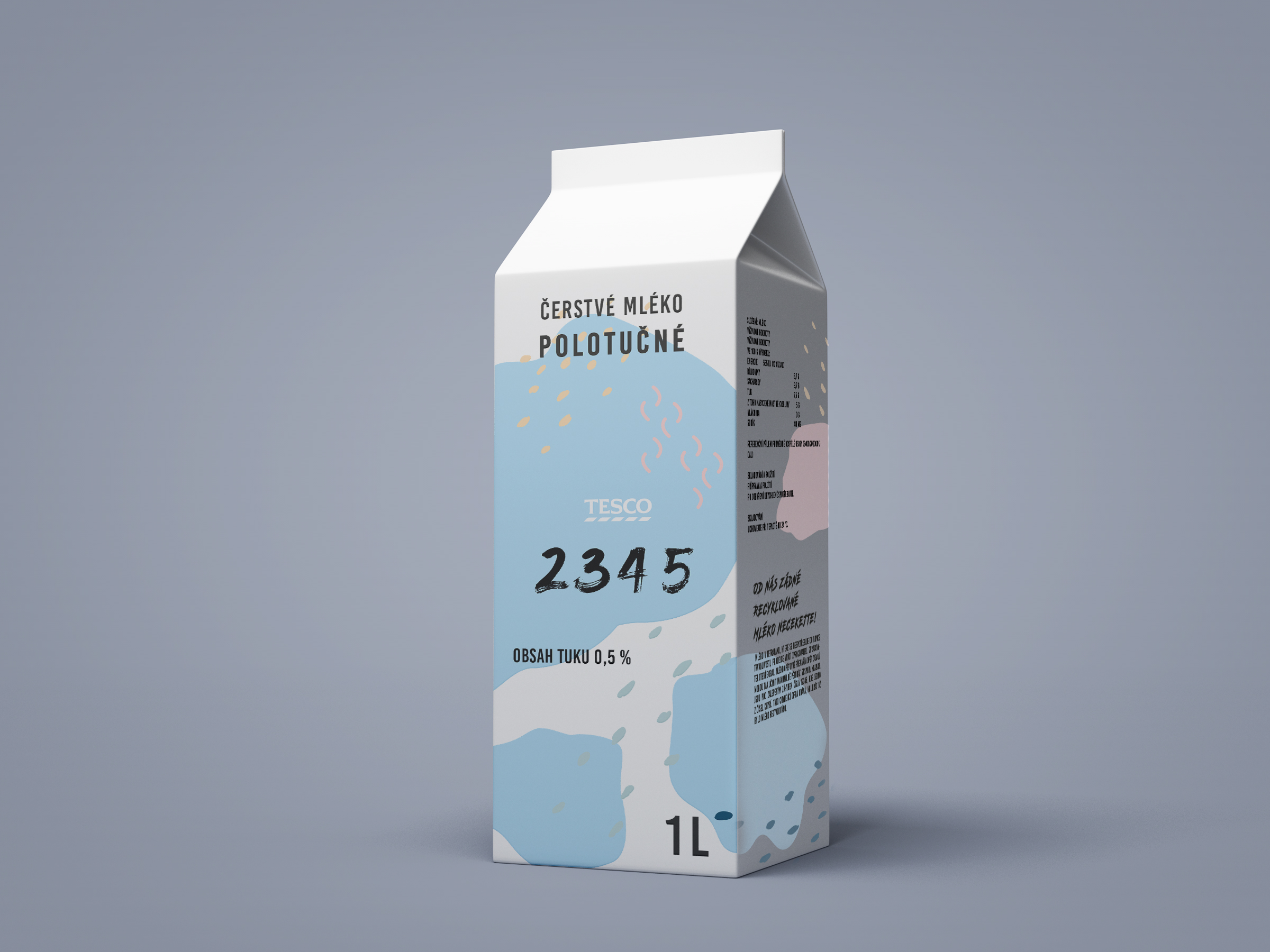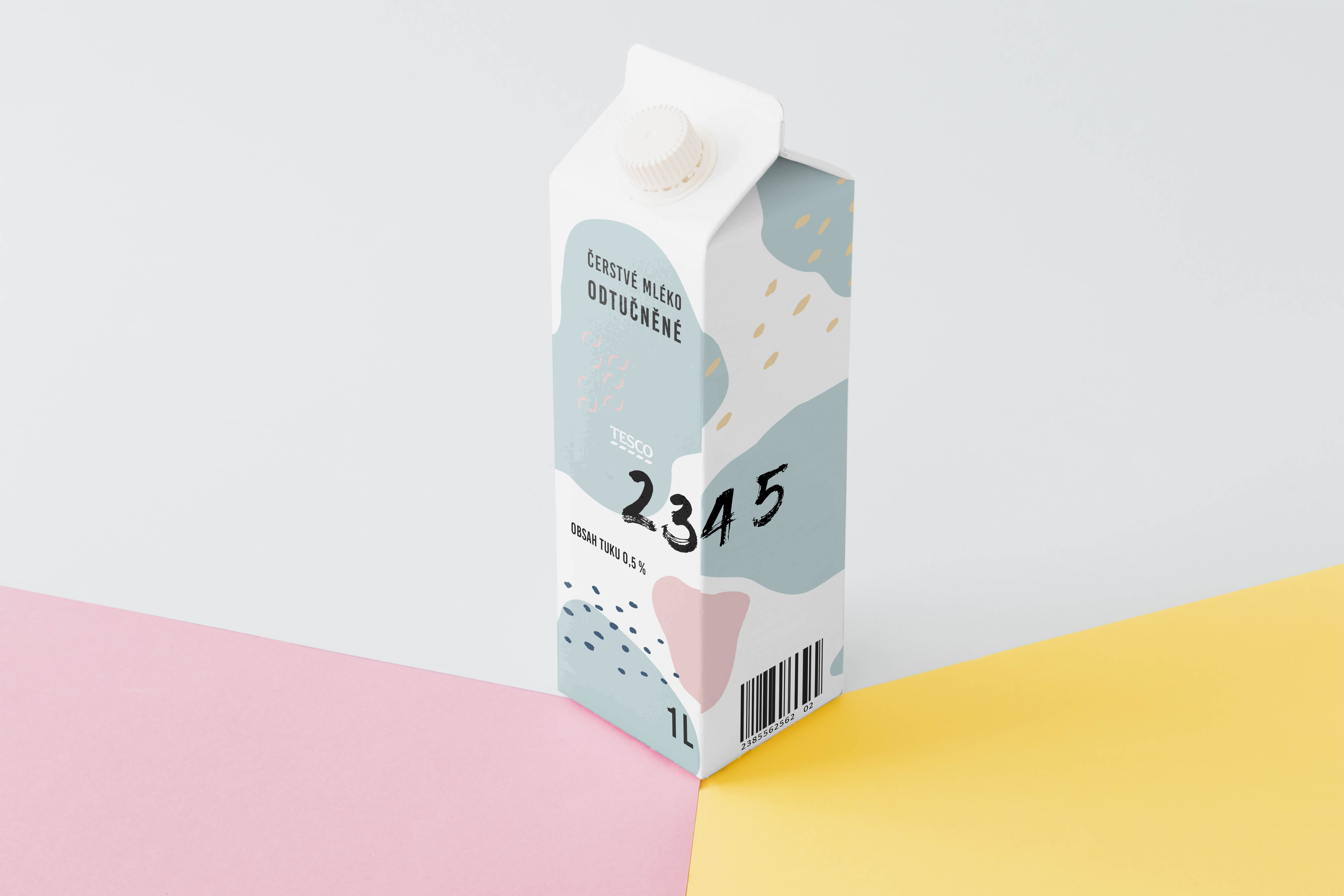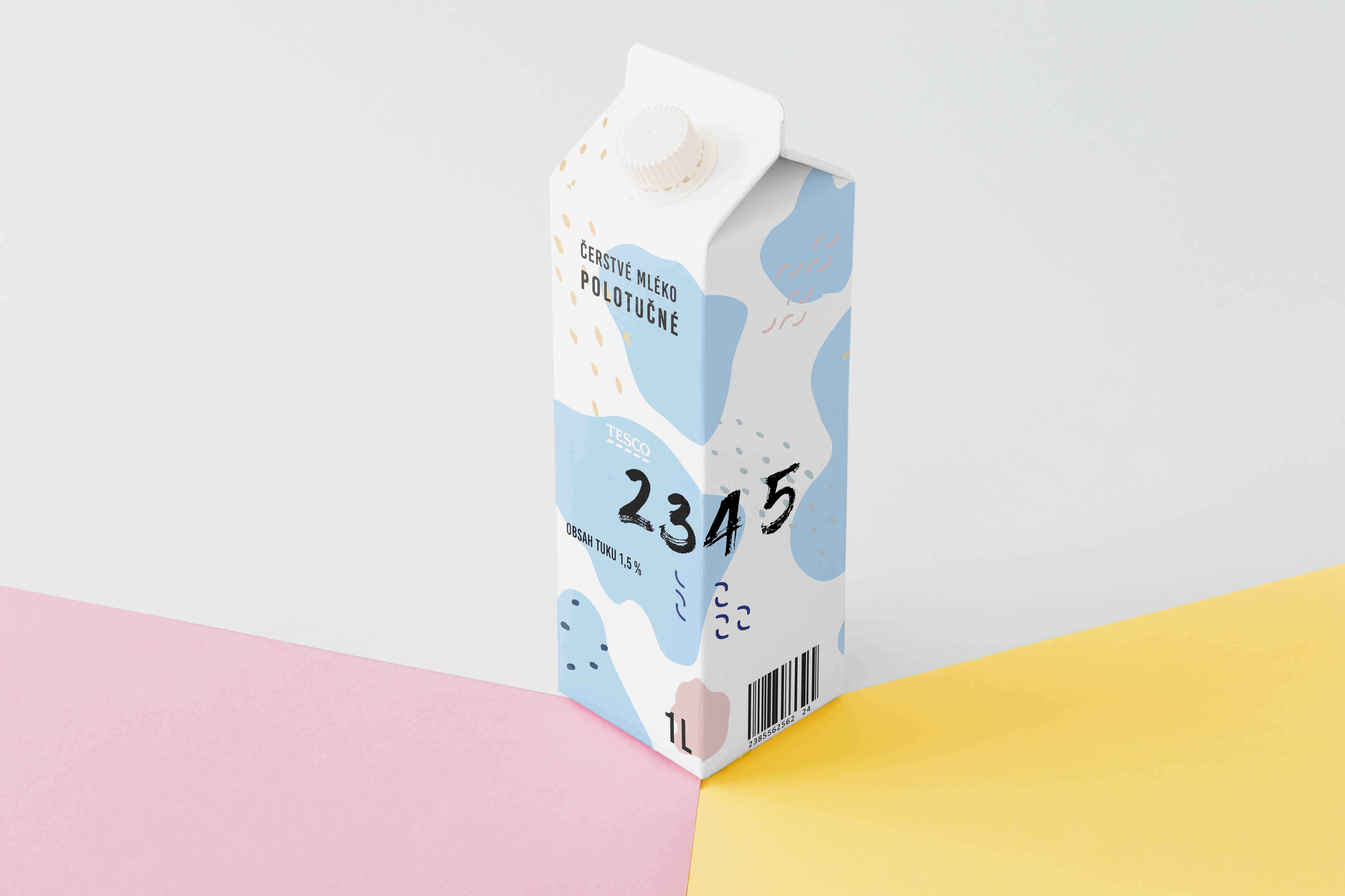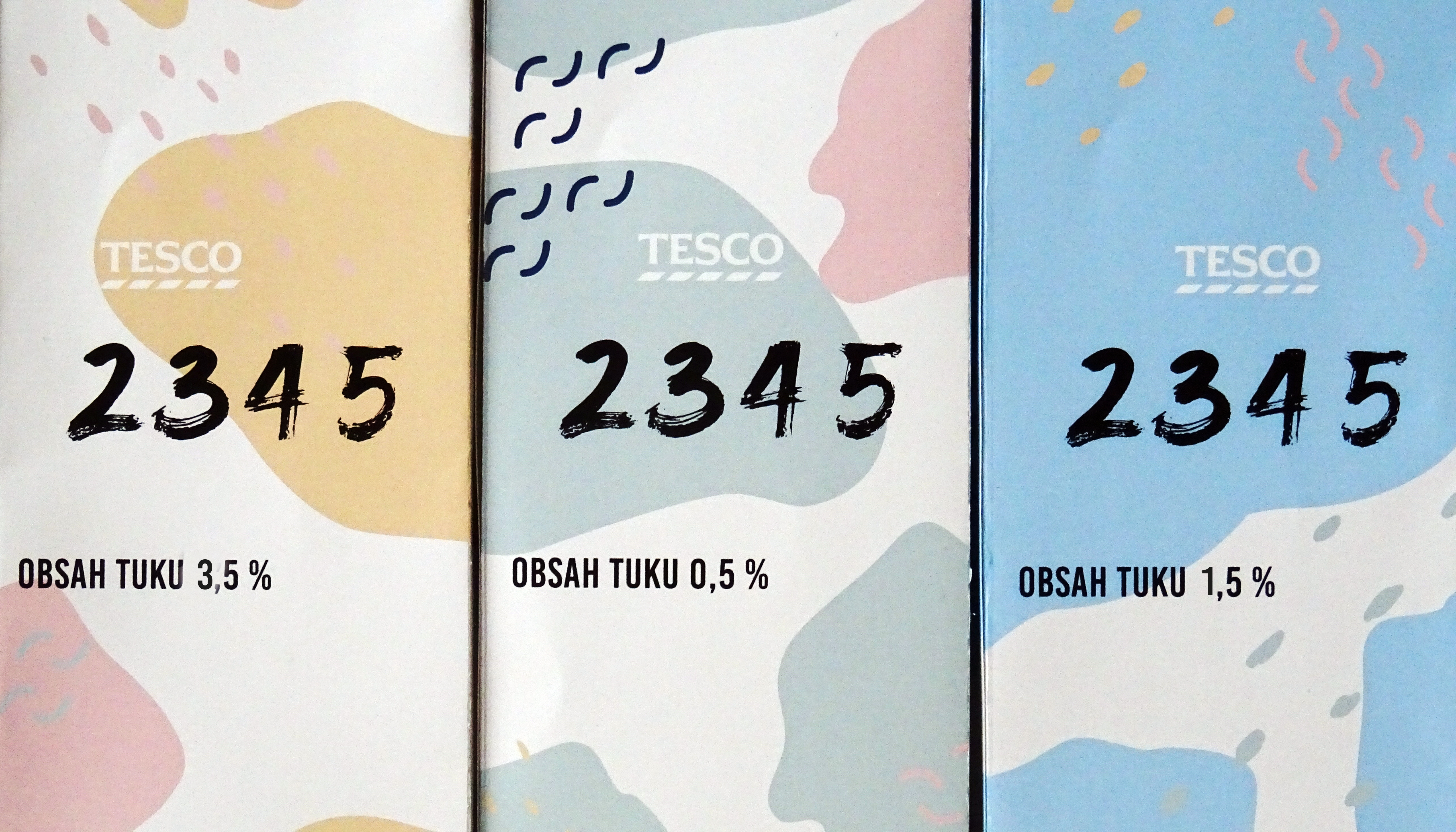 Série tetrapak obalů na čerstvé mléko podle typu mléka (plnotučné, polotučné a odtučněné).