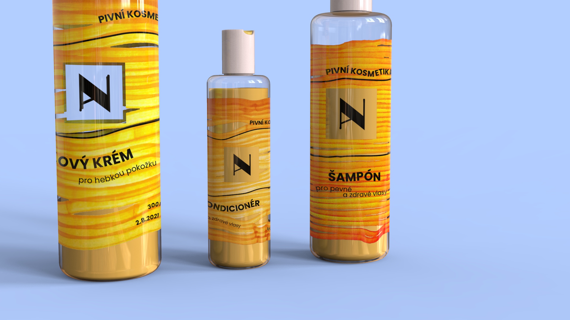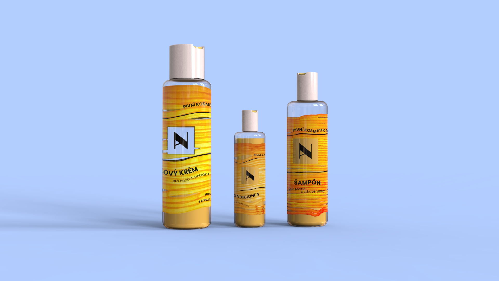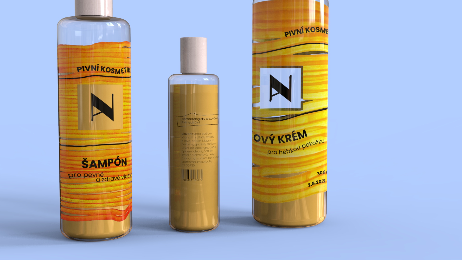 Grafické řešení obalů pro pivní kosmetiku, inspirované prací Maxe Machaidzeho, užívající ručně kreslených textur jako svého hlavního estetického prvku.