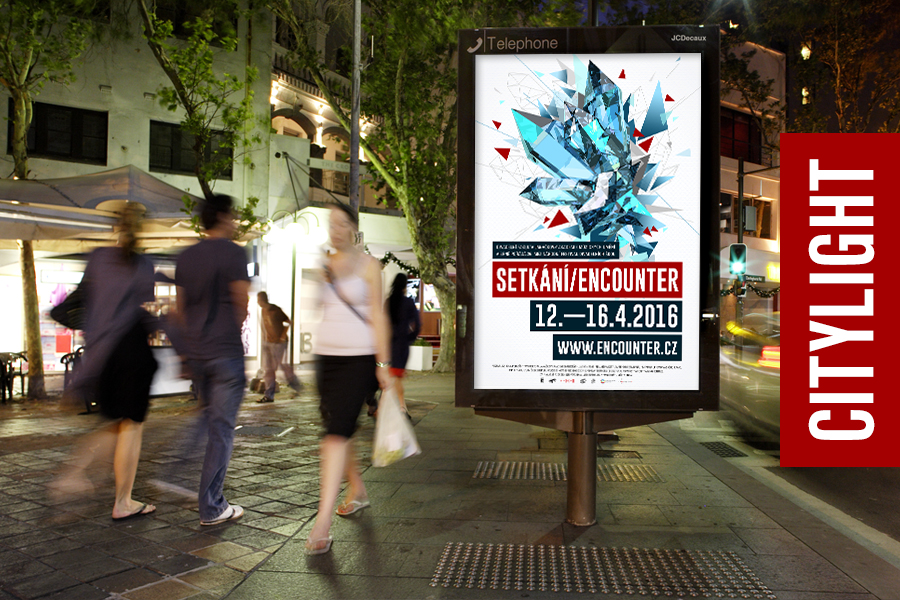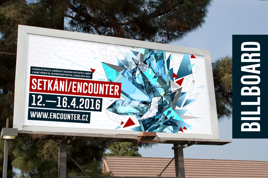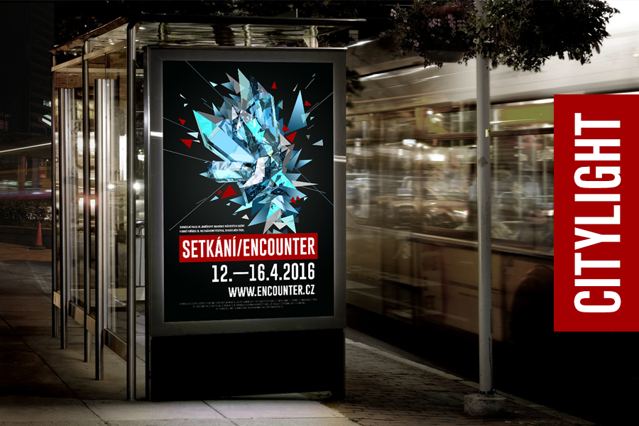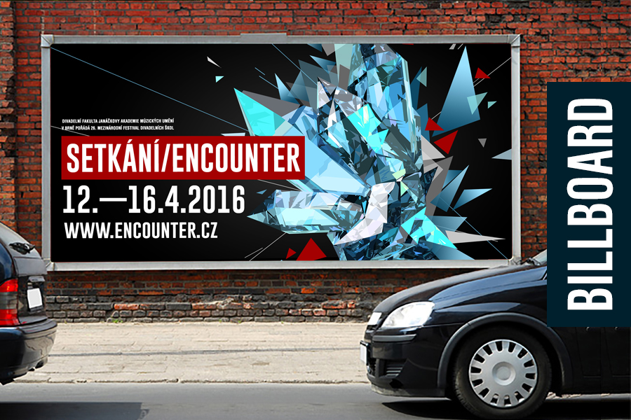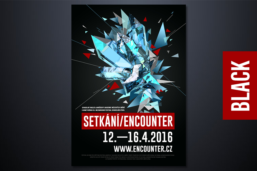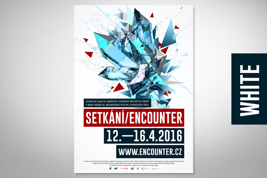 Vizuální styl festivalu Setkání/encounter. Úkol jsem zpracovala ve dvou barevných variantách, černé a bílé.