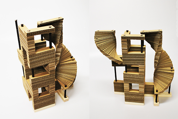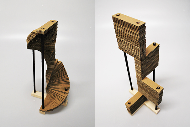 Spojením dvou typů škrabadel se dají skládat různé variace. Práce související s diplomovou prací, ověření stability a proporcí.