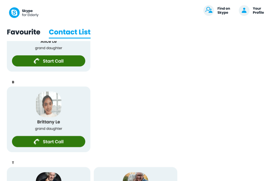 Sociálny kontakt je veľmi dôležitý, či už pre ľudí v produktívnom veku ale aj pre starších ľudí, ktorí často žiju osamote. Aktuálna situácia vo svete tento problém ešte viac "okryla" a viac naň upozornila. Práve preto som sa začal zamýšlať nad tým ako zefektívniť komunikáciu starším ľuďom pomocou digitálnych technológií. Do mojej cielovej skupiny som zahrnul ľudí, ktorí nemajú absolutne žiadne skúsenosti s modernými dig. technológiami. V mojom riešení som nevymýšlal nič nové, snažil som sa využiť technológie, ktoré poznáme ale upraviť ich pre potrebu starších ľudí. Tak vznikol projekt Skype for Elderly.