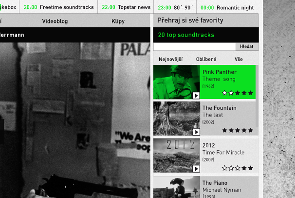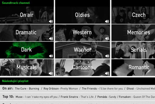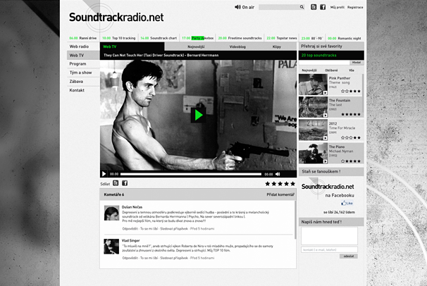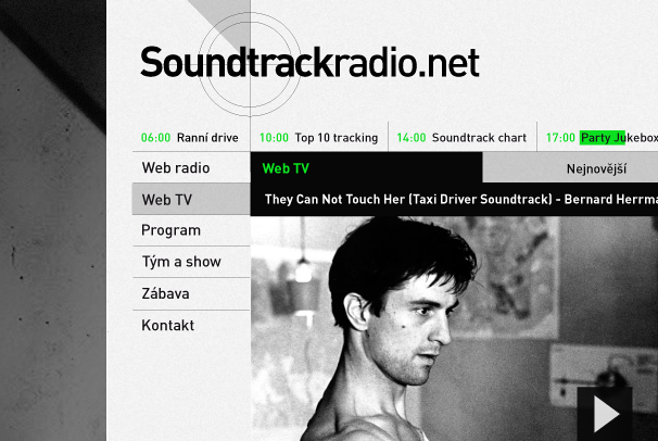 Web internetového rádia Soundtrack se zaměřuje na filmovou hudbu, jak z historie tak ze současnosti. Drátěný model webu, je tvořen systematicky a hlavně konstruovaným a intuitivním ovládáním.