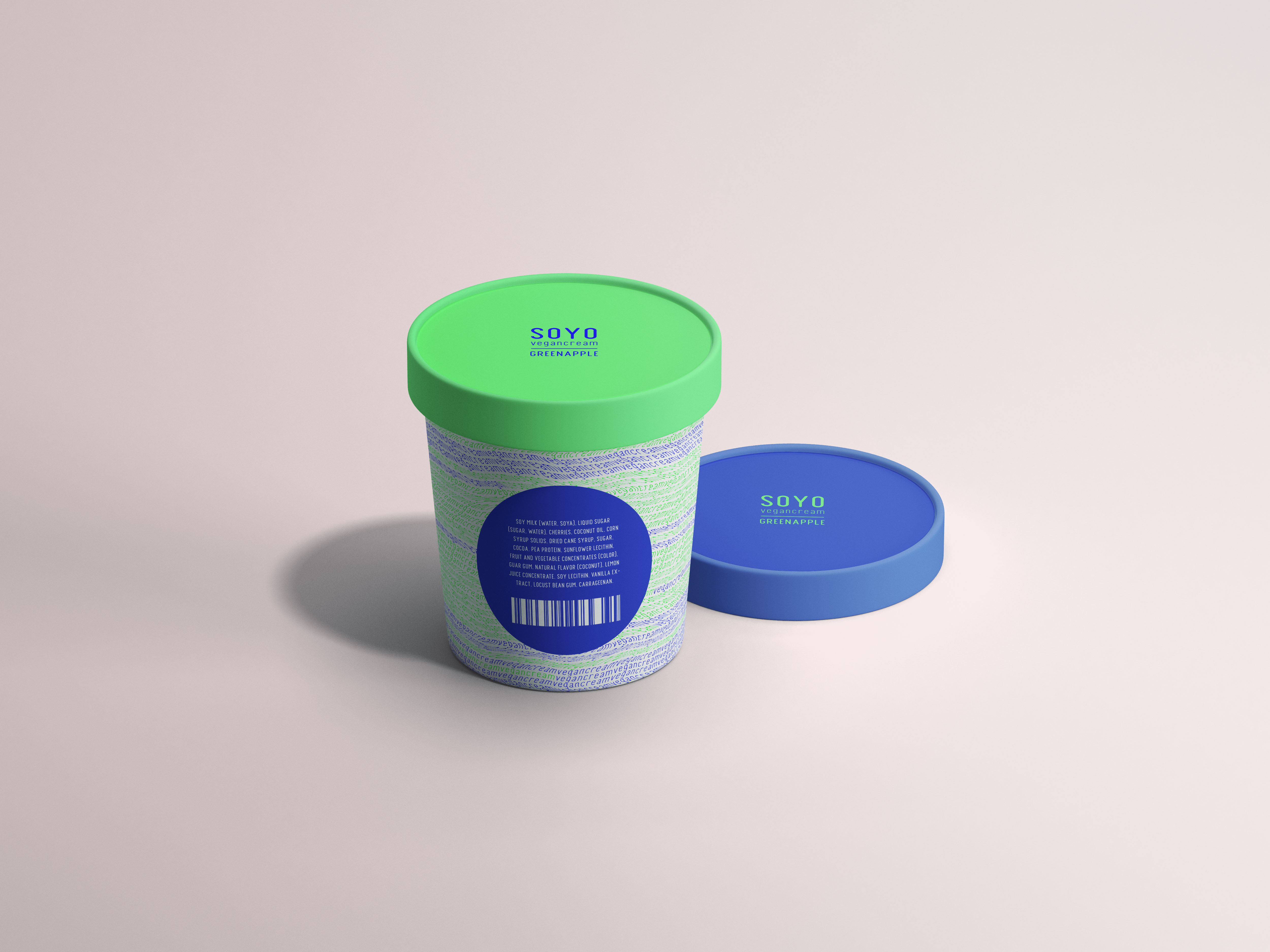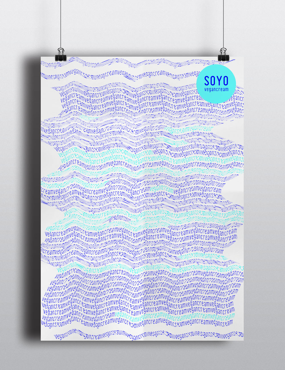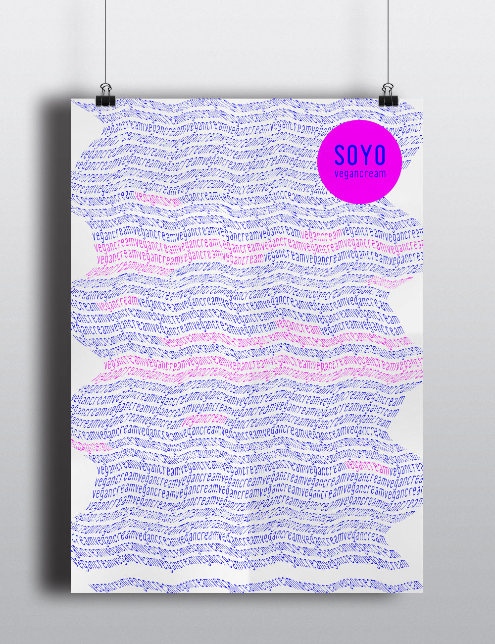 Návrh typografického obalu a vizuálneho štýlu. Séria troch typografických obalov pre zmrzlinu SOYO. Obal sa skladá z deformácie typografických znakov. Deformácia písma znázorňuje topiacu sa zmrzlinu a farebnosťou ktorou sú obaly odlišné, určuje príchuť danej zmrzliny. Ako propagácia značky SOYO je vytvorená séria typografických plagátov a vizitiek.