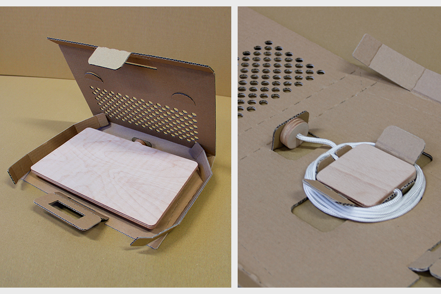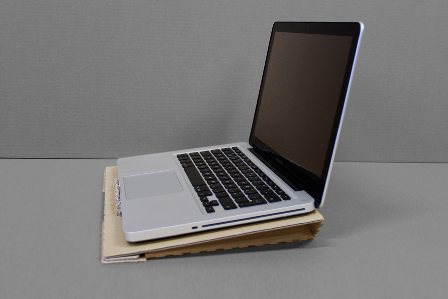 Minimalistický obal na notebook, ktorý je možné po rozbalení produktu používať ako stojan / chladiacu podložku.