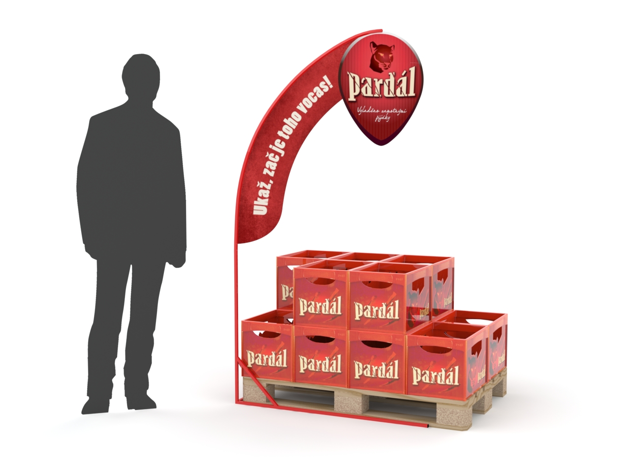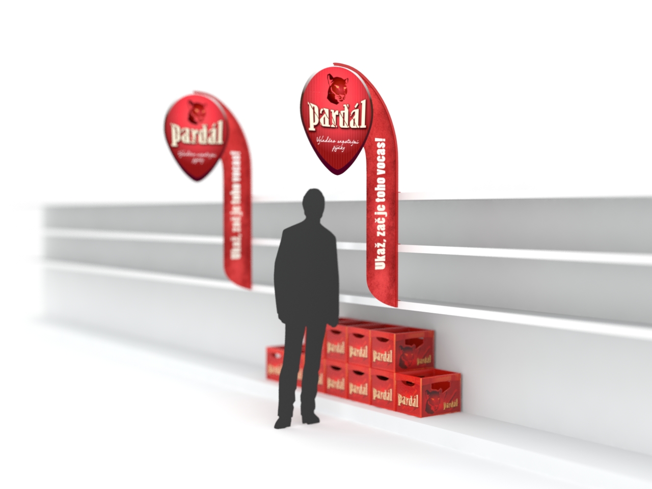 Řešení regálového čela, podlahového stojanu a parazitního stojanu pro značku Pardál.