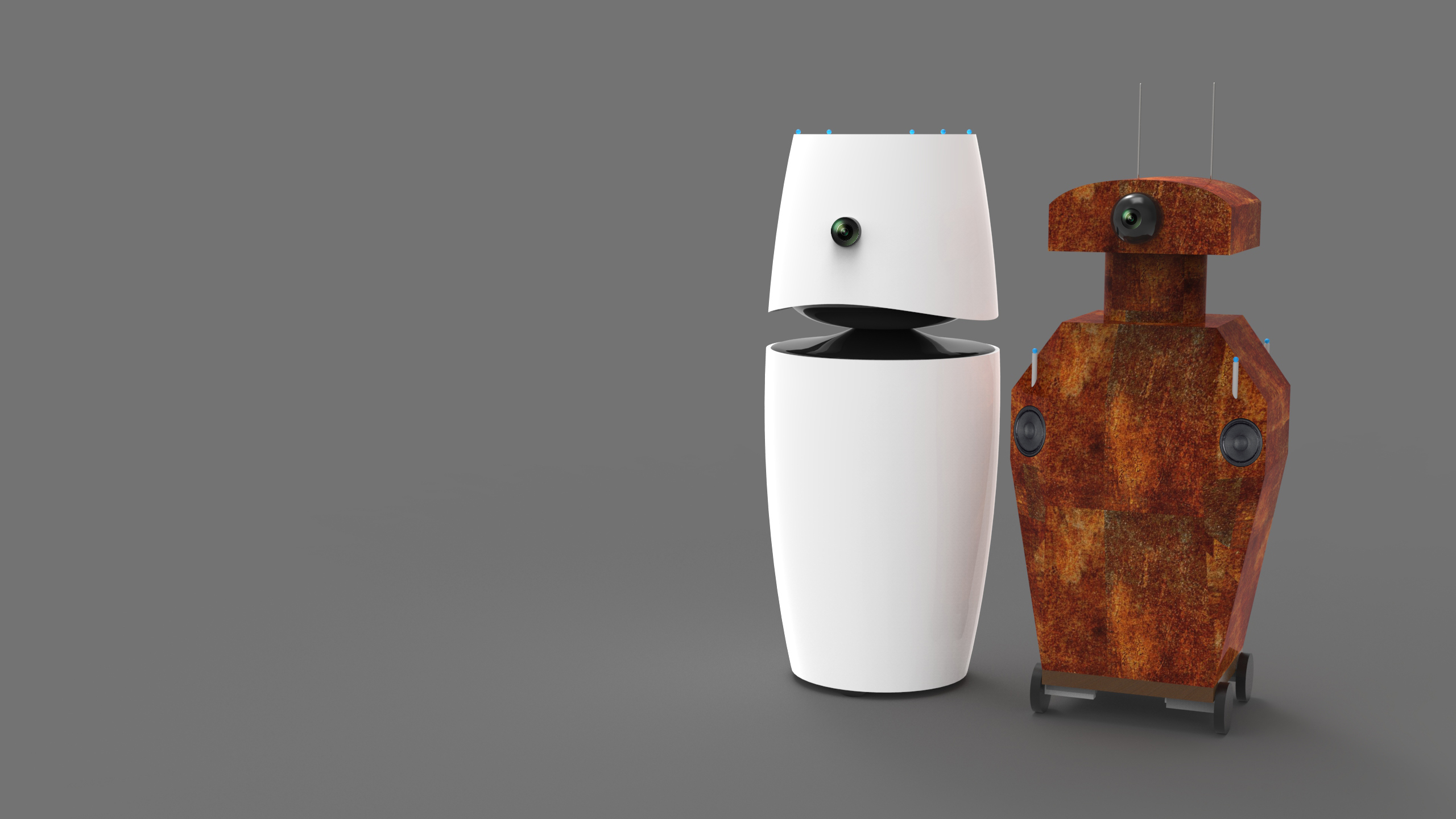 Návrhy dvou robotů na odlišných podvozcích. První představující stáří se jménem Karel a druhý představující moderní sofistikovaný stroj s názvem Auanema.