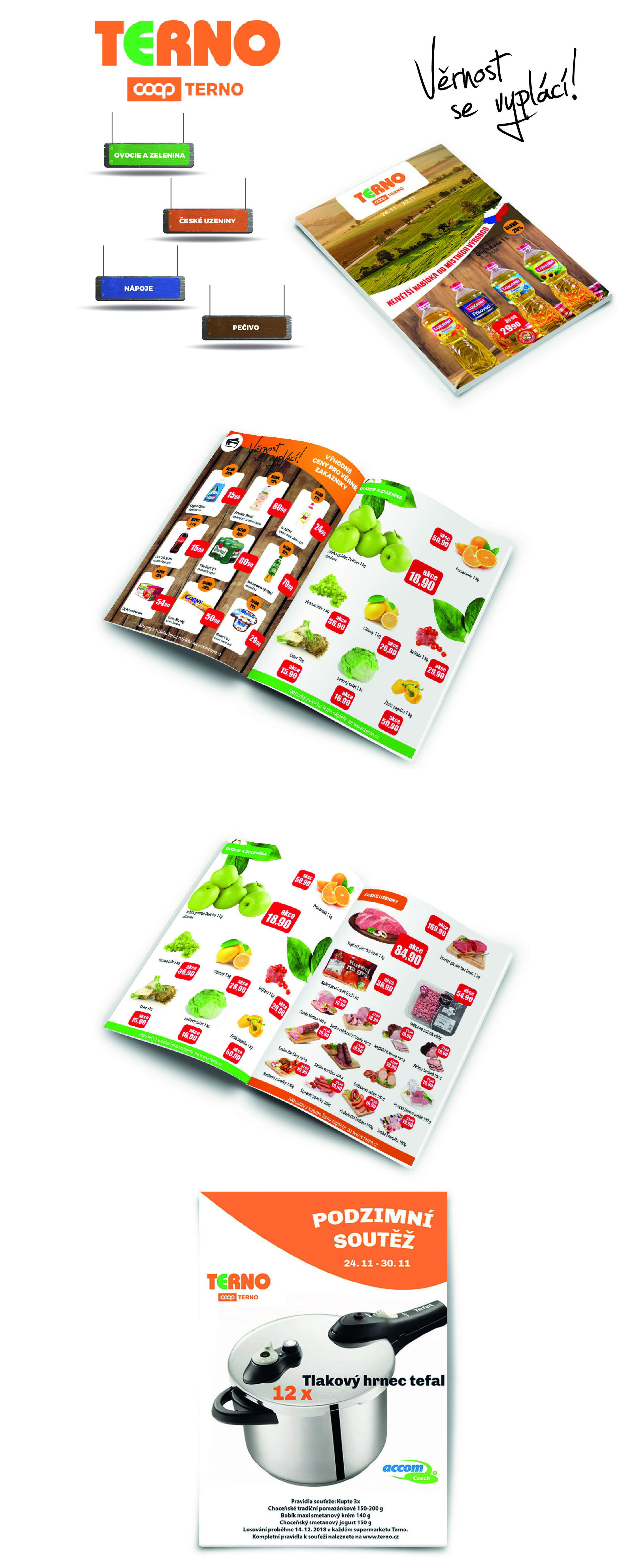 Design letáka pomáha zákaznikovi sa jednoduchšie zorientovať v sortimente, ktorý má viaceré kategórie oddelené farebne. Je prepojený aj s orientačným systémom a spolu tvoria celok.