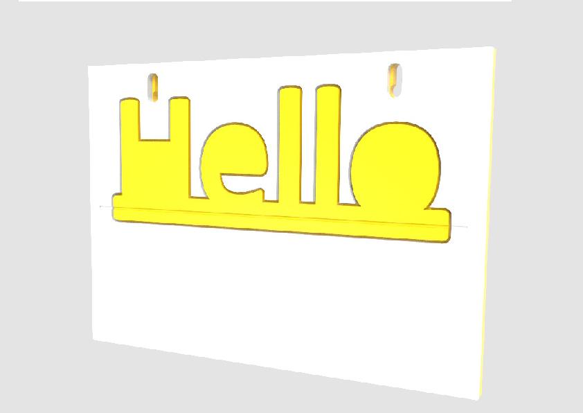 a v prípade potreby sa dá vyklopiť. Trojrozmerný nápis slúži ako vešiak na kľúče, tašky, kabáty alebo dopisy.