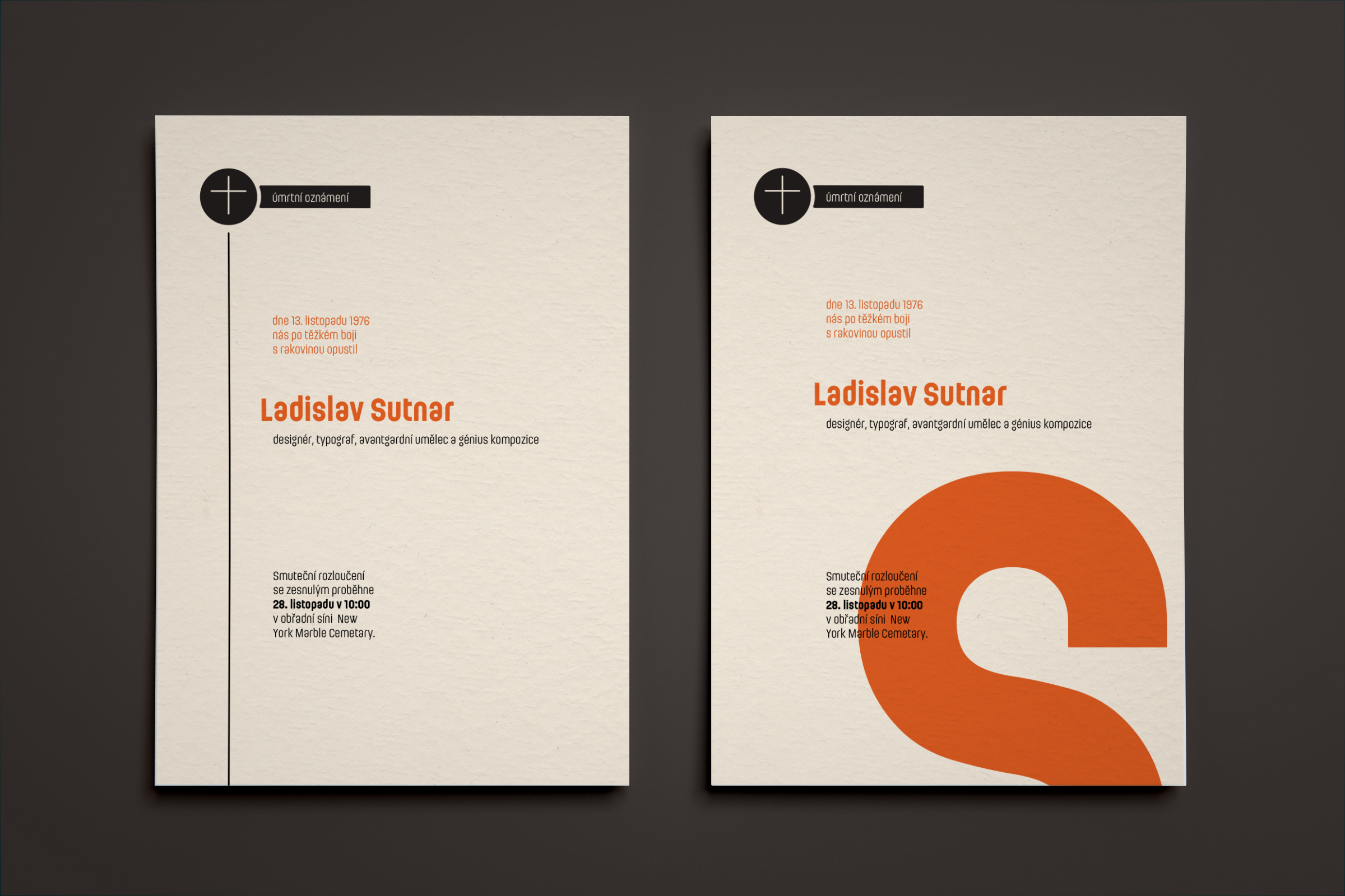 Jednoduché typografické cvičení zaměřené na kompozici a analýzu práce významných českých či světových grafiků a typografů. Zaměřila jsem se na život a práci mého oblíbeného grafika Ladislava Sutnara a vytvořila čisté harmonické parte s použitím jeho typických barev a písma Ladislav.