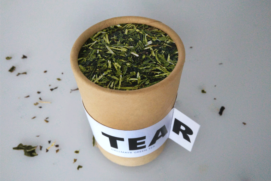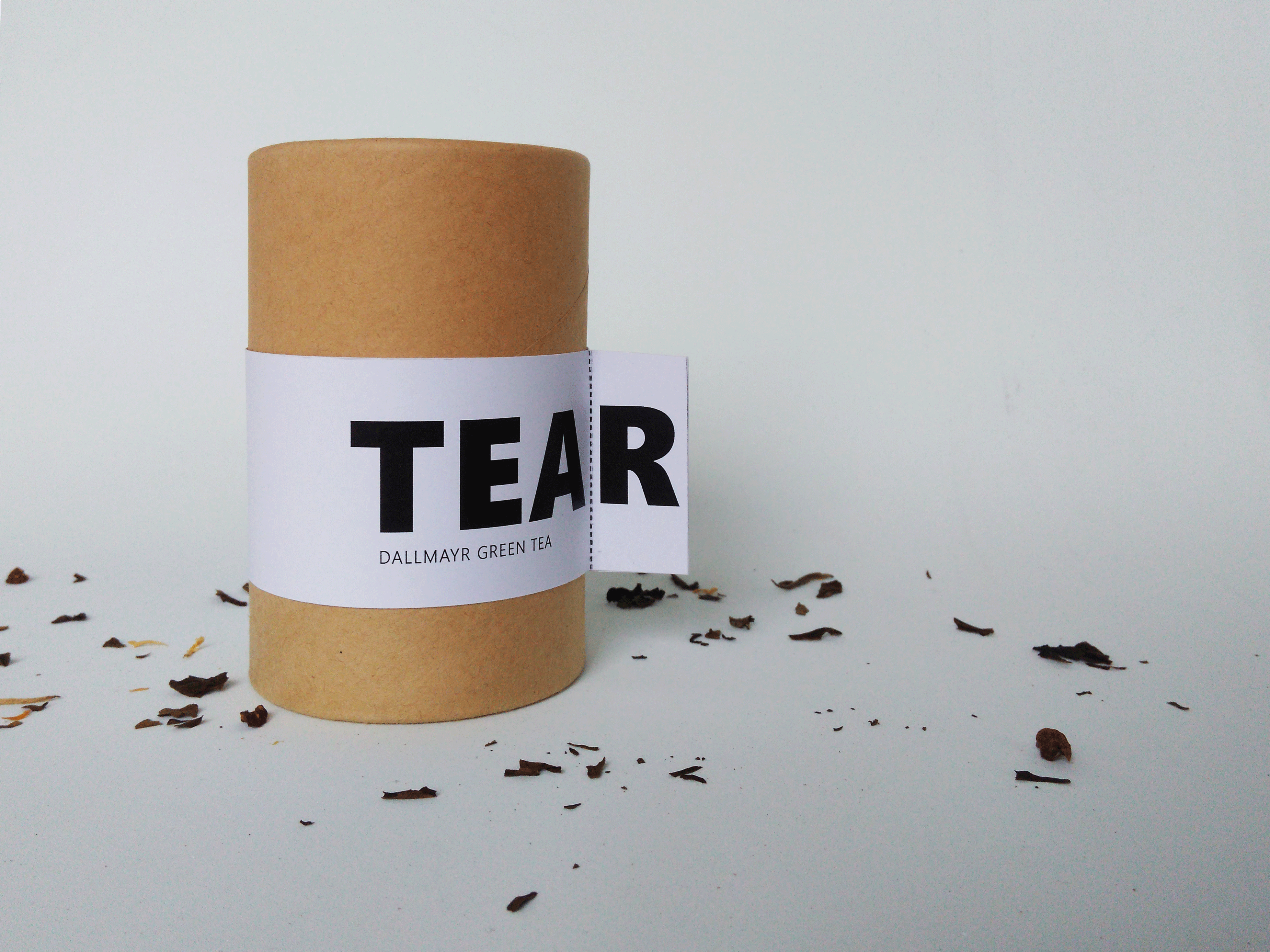 Návrh sady obalov na čaj založený na slovnej hračke (TEAR po odtrhnutí R = TEA). Packaging tvorí tubus, vnútri kruhové čajové sáčky resp. sypaný čaj. Vrchná strana tubusu farebne odlíšená (na základe druhu čaju, napr. zelený, ovocný, čierny...).