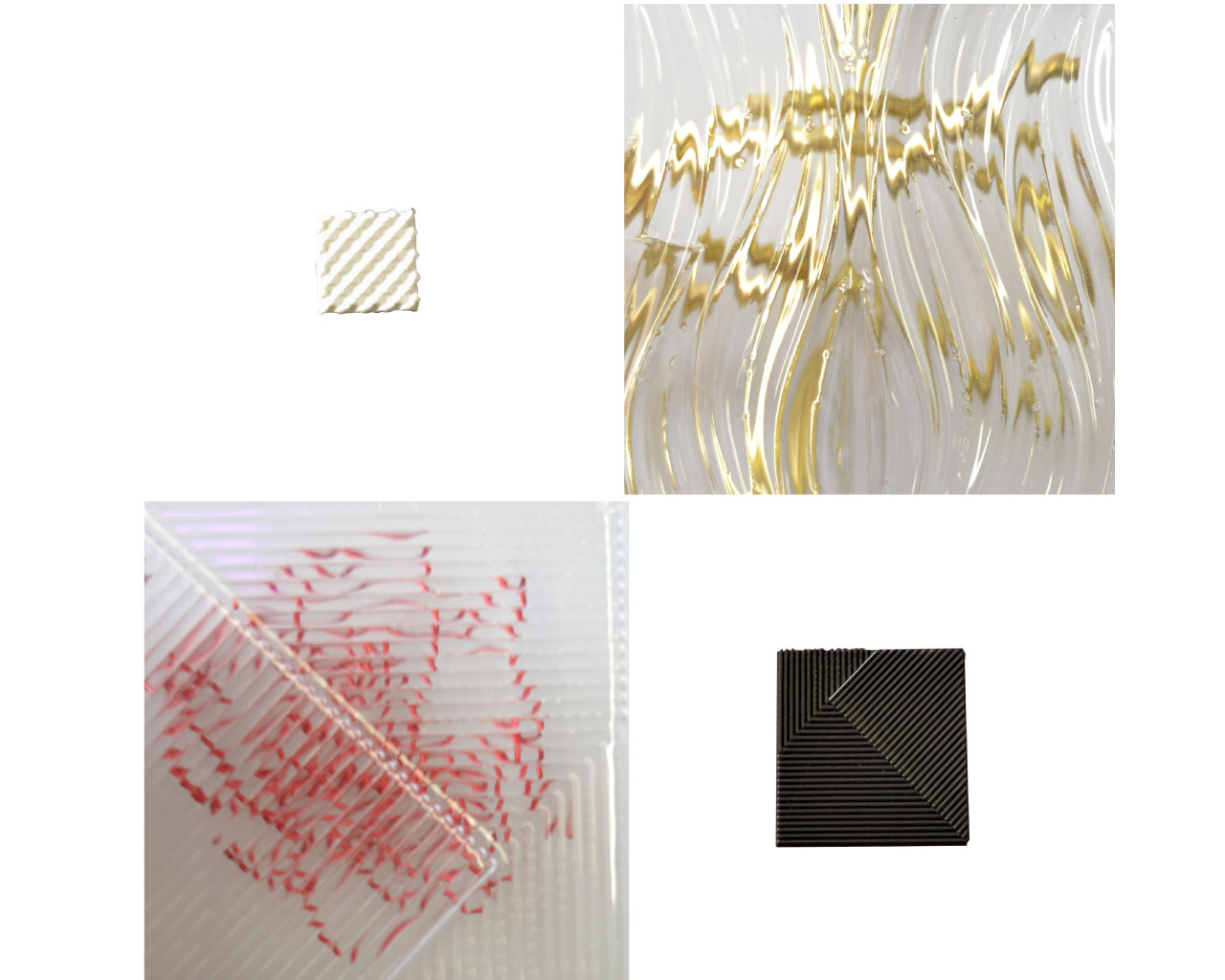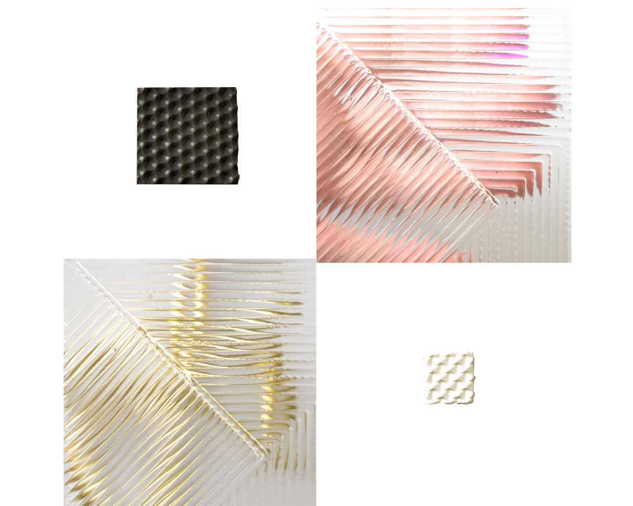 Efekt refrakcie vytvára nerovnomerný povrch na ktorom sa biele svetlo rozbíja do farebného spektra. Priestorové vzorované patrice,ktoré sa odvakujú z transparentného plexiskla a vytvoria nový unikátny refraktor.