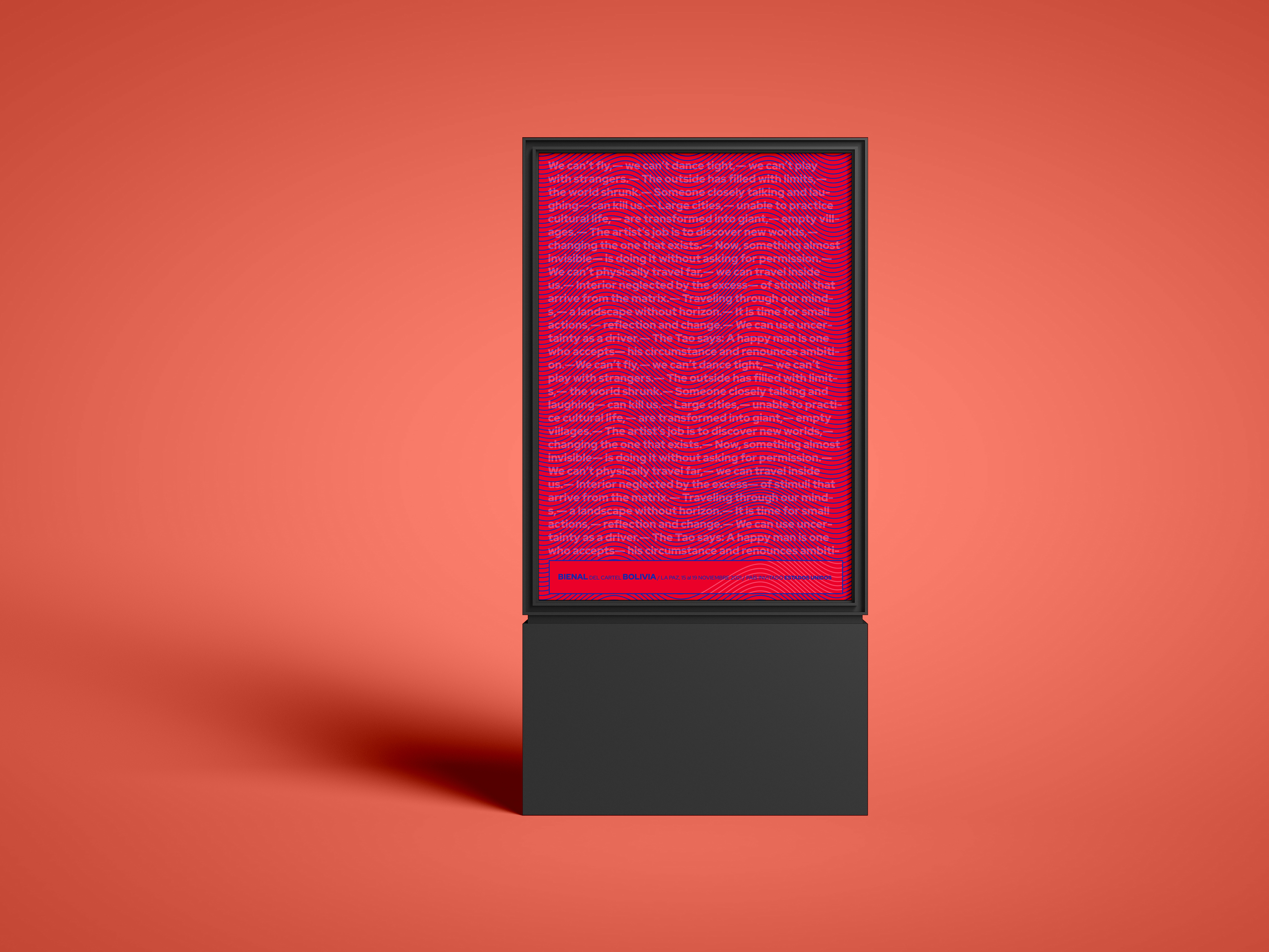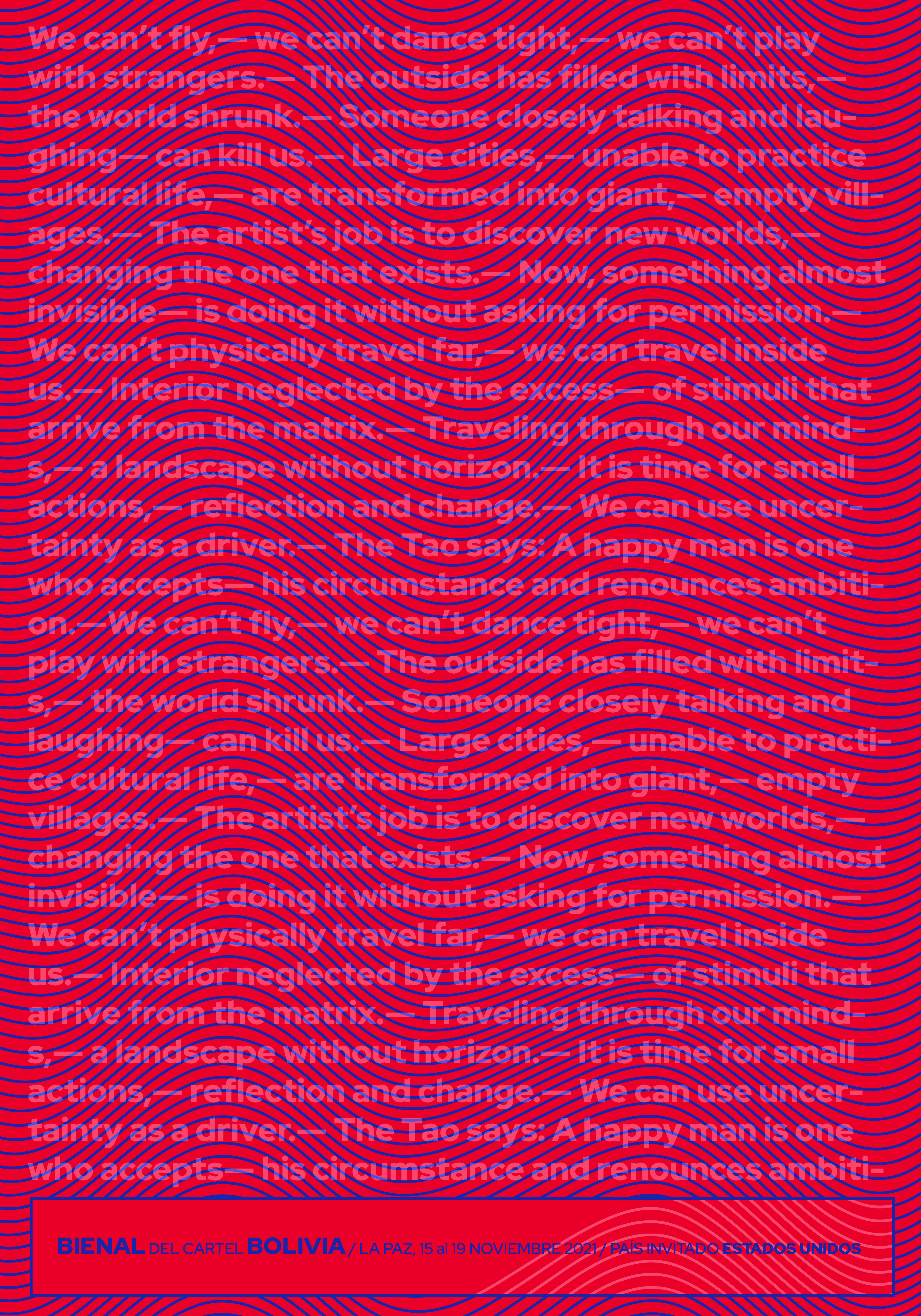Plakát určený na typografickou soutěž, využívající čistých barevných ploch a samotného písma k vytvoření iluze pohybu a prostoru.