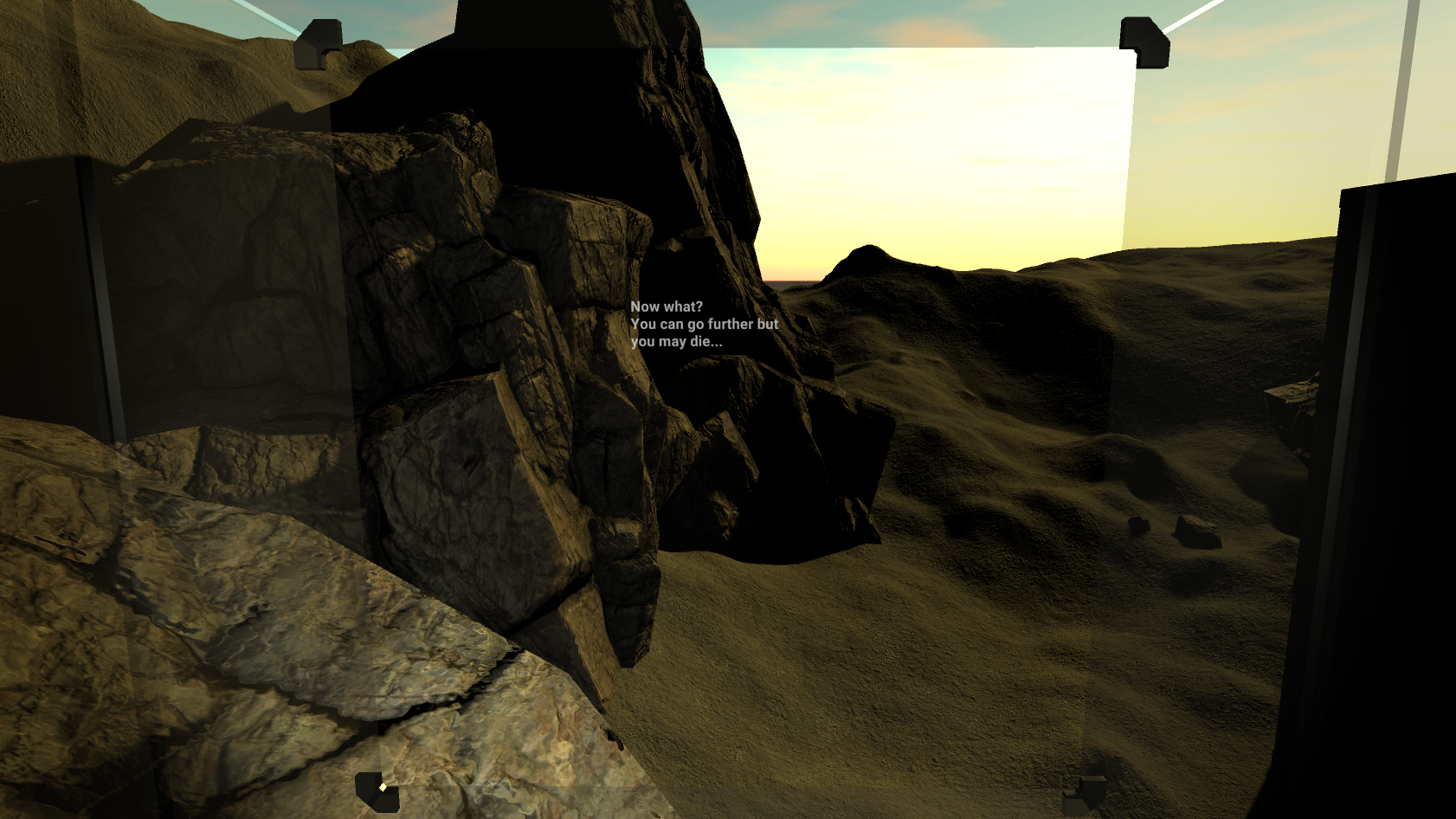 Individuální projekt s cílem seznámit se s tvorbou ve 3D prostoru a s herním enginem Unity. Výstupem je virtuální prostor, ve kterém se hráč pohybuje, rozhlíží se a prozkoumává okolí. Odrážejí se zde mé pocity z podzimního lockdownu, který mne uvěznil na dlouhé týdny do totální samoty a nejistoty. Stavba, ve které se hráč pohybuje, je členěna do různých sekcí, obsahuje textové vzkazy a různé překážky. Je tu však skutečně východ? Nebo se jedná jen o děsivou noční můru? Buďte tam jak dlouho chcete. (pohyb šipkami nebo klávesami WASD, rozhlížení kurzorem myši)
