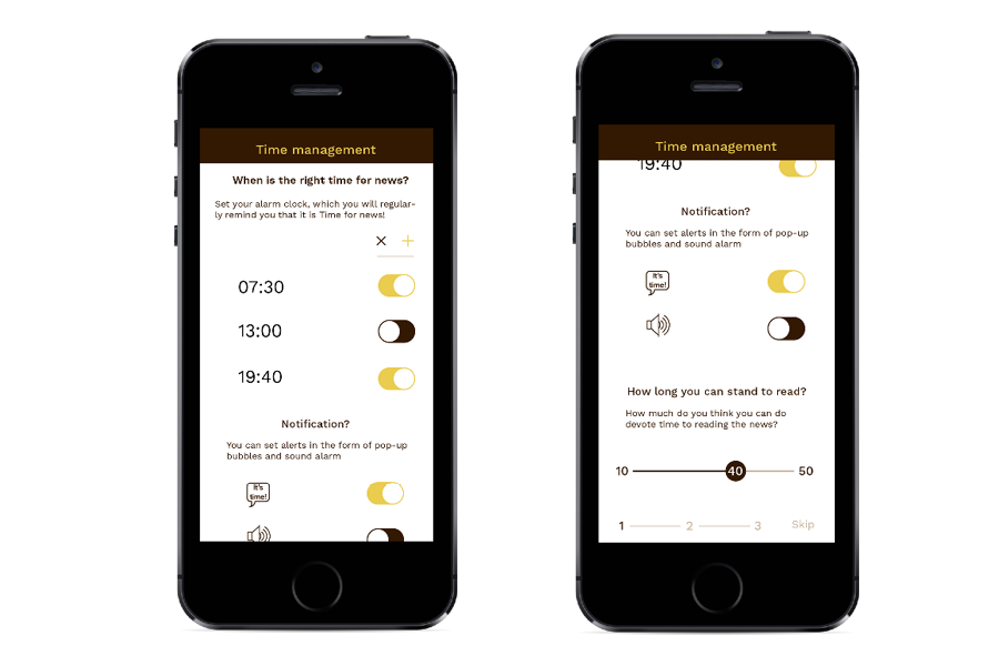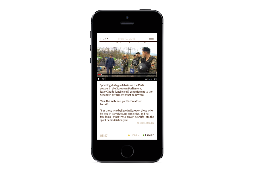 Aplikace na podporu čtení zpravodajství. Aplikace má upozornit a motivovat ke čtení. Stejně tak nastavení aplikace, které má uživateli zpříjemnit a zpraktičnit čtení zpráv.