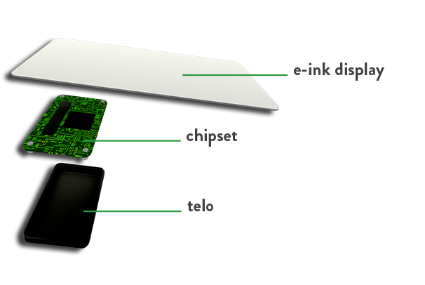 e-ink display — finančne nenáročný s nízkou spotrebou, odolný a flexibilný