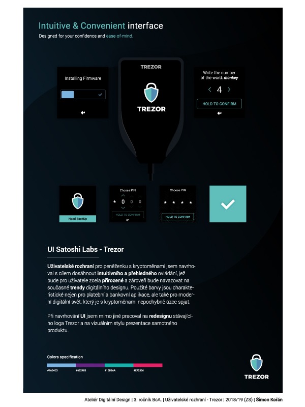 Při navrhování UI jsem mimo jiné pracoval na redesignu stávajícího loga Trezor.