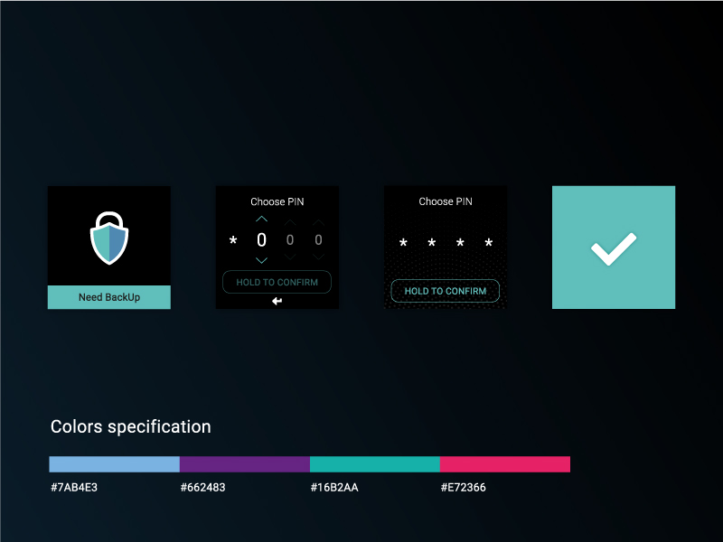 Uživatelské rozhraní pro peněženku s kryptoměnami jsem navrhoval s cílem dosáhnout intuitivního a přehledného ovládání, jež bude pro uživatele zcela přirozené a zároveň bude navazovat na současné trendy digitálního designu. Použité barvy jsou charakteristické nejen pro platební a bankovní aplikace, ale také pro moderní digitální svět, který je s kryptoměnami nepochybně úzce spjat.